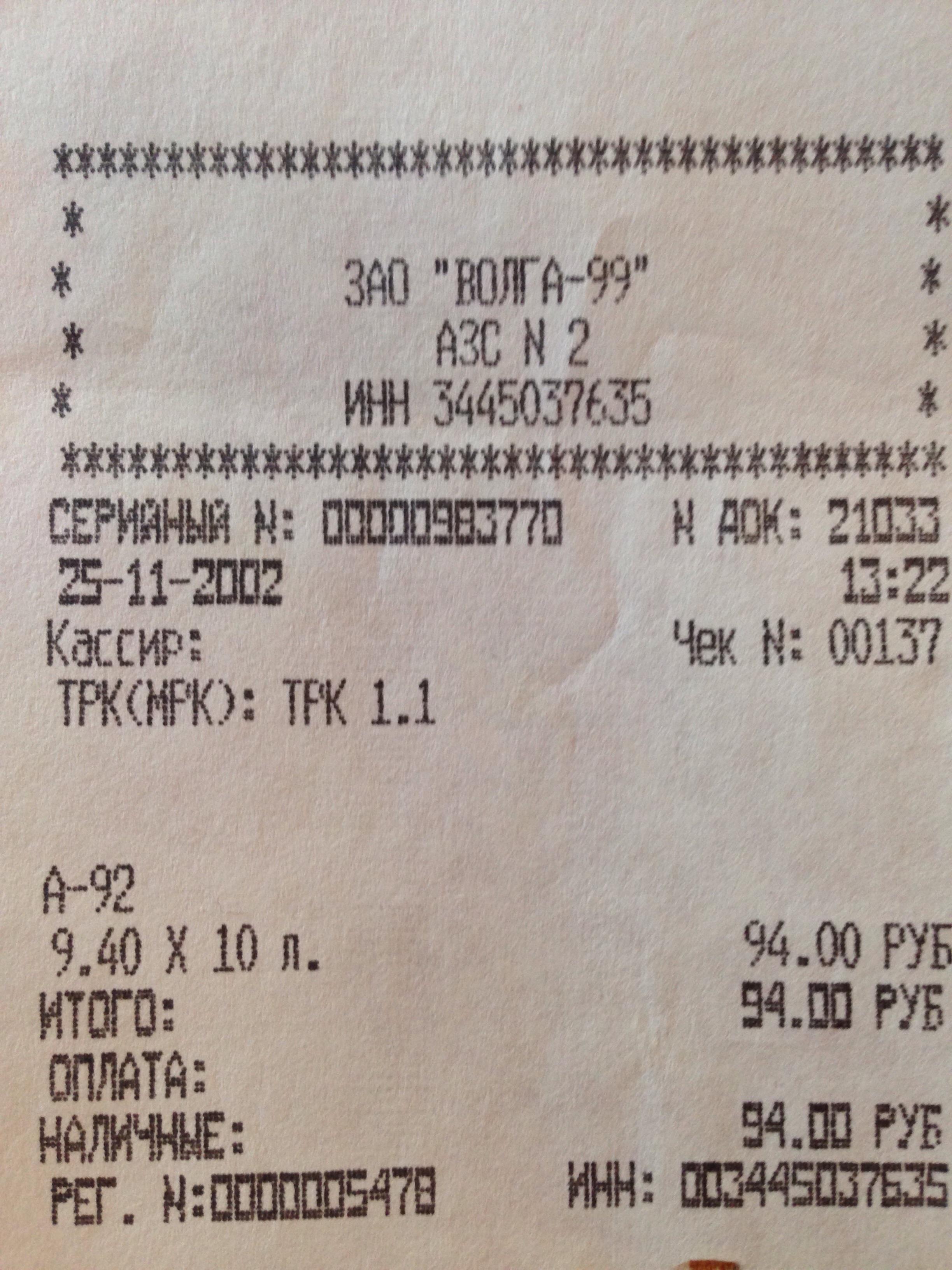Это да))))) мой водительский стаж начинался с 1,90 за литр 92-го))))))) ---------- Сообщение добавлено 22.07.2015 12:03 ---------- Даже чек где-то валяется мой первый)))