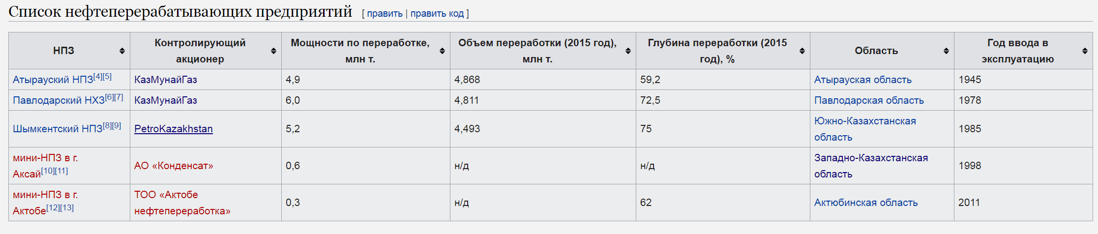 Вот к энтой таблице для сопоставления точно такую же да по России. Штук 30 НПЗ будет не больше. И ещё б Омерику. Там их сотня на вскидку. Ну и кому тогда наш бензин нужен с заводов 40-80-ых годов постройки и такого же "современного оборудования". Единственное во что поверю в экспорт мазута. Его вроде испортить нечем нельзя. Но тогда почему бензин дорожает?