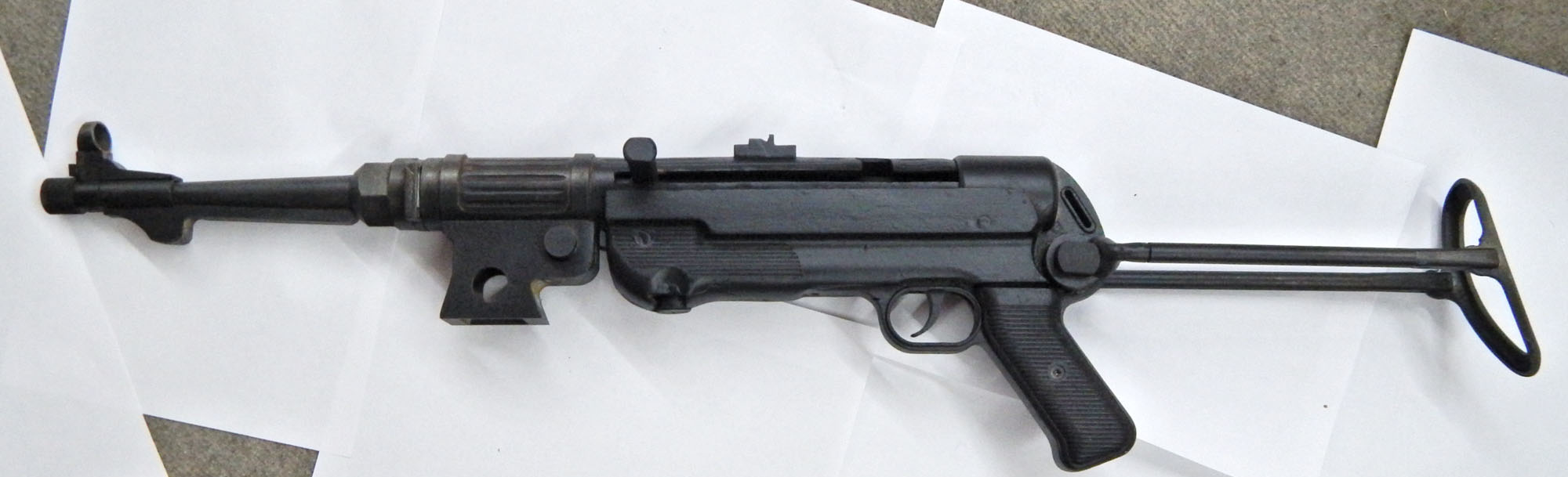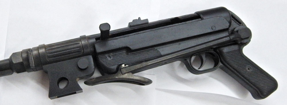 это мп38 с фрезерованным рессивером вот ещё фото. Мп38 гораздо реже мп40, он был фрезерованный, с фрезерованным приёмнико(как и копия) а мп40 был со штампованным рессивером и приёмником, мп40 выпускалось 400 тыс. штук, а мп38 всего 70 000 штук.