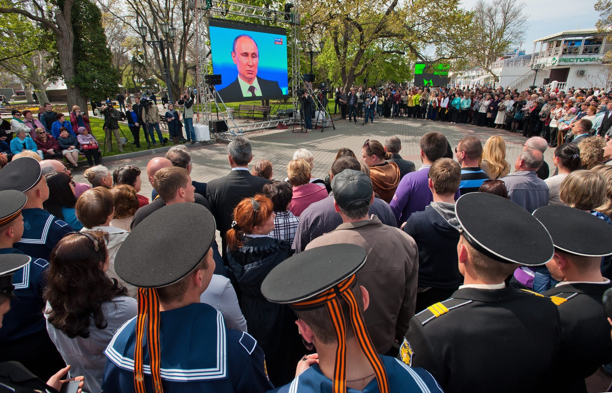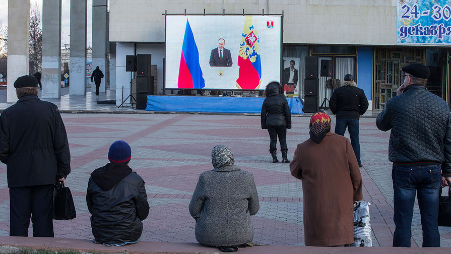 Чет народу как то маловато.Видать начинает доходить по немного . "Жители Симферополя смотрят трансляцию ежегодного послания президента РФ В. Путина Федеральному собранию РФ"