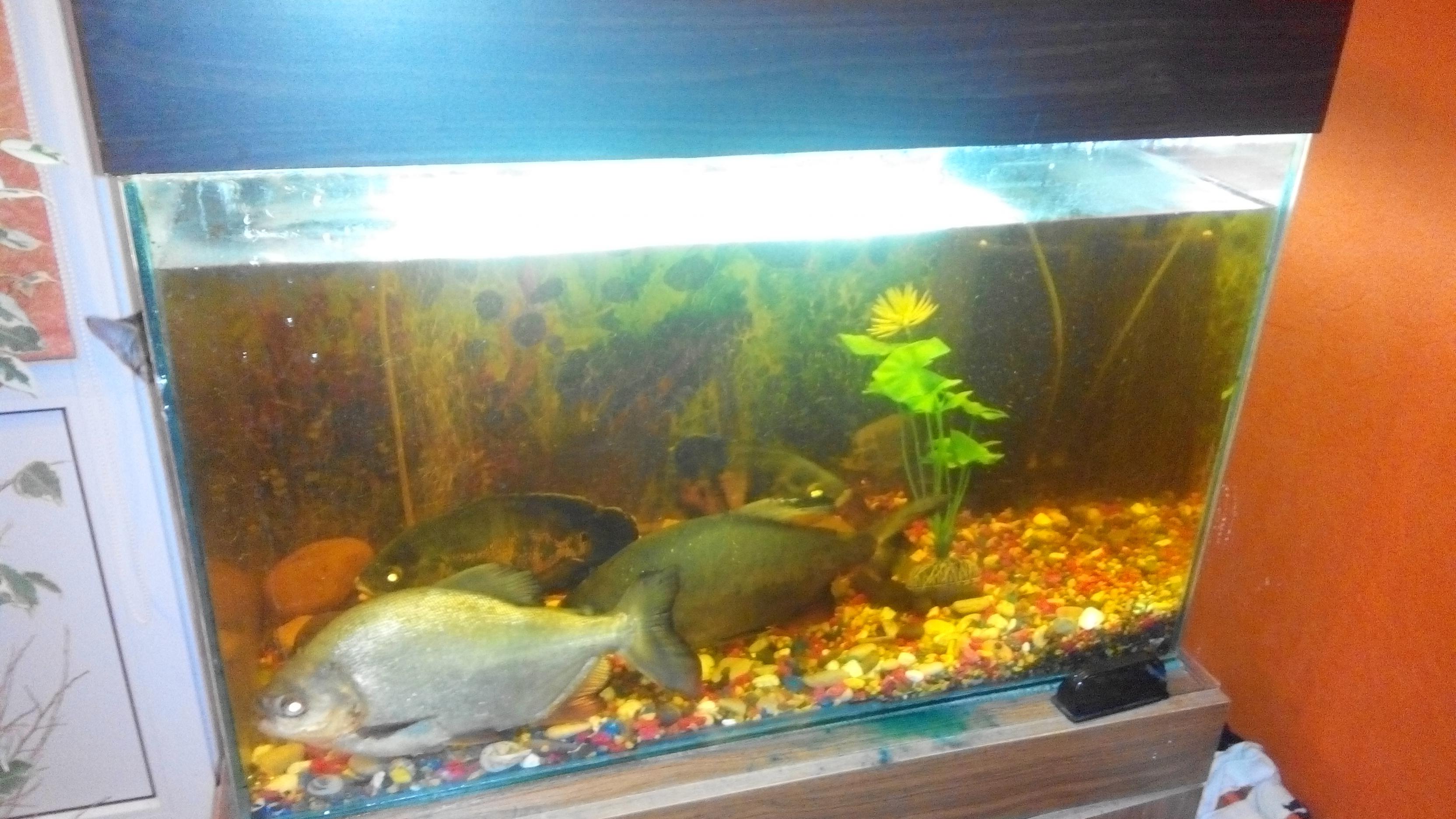 продам аквариум 200л с фильтром и компрессором на 2 выхода Проживают 2 пираньи примерно по 30 см 2 астронотуса прмерно 25 см скалярия и сколько-то мелких сомов цена 5000