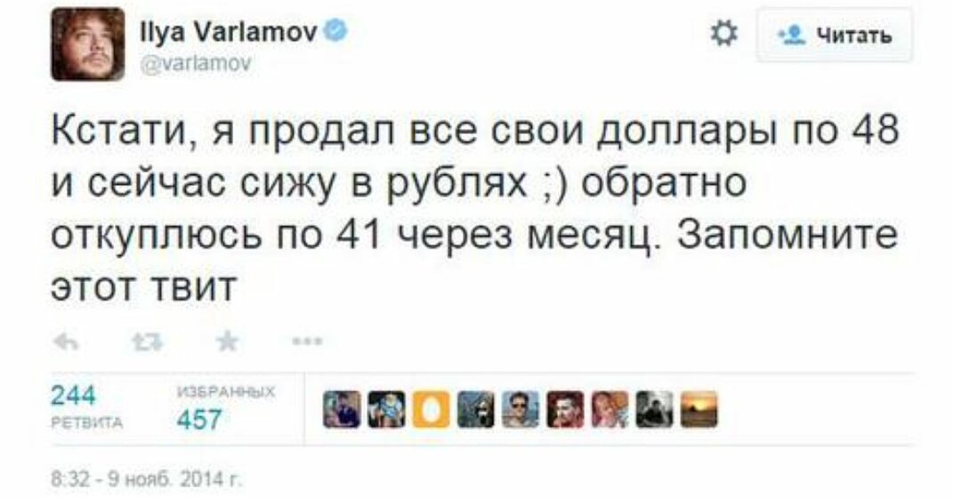 Да там был его раскрученный пост в твиттере где он на пике курса прикупил себе долларей и всем советовал покупать