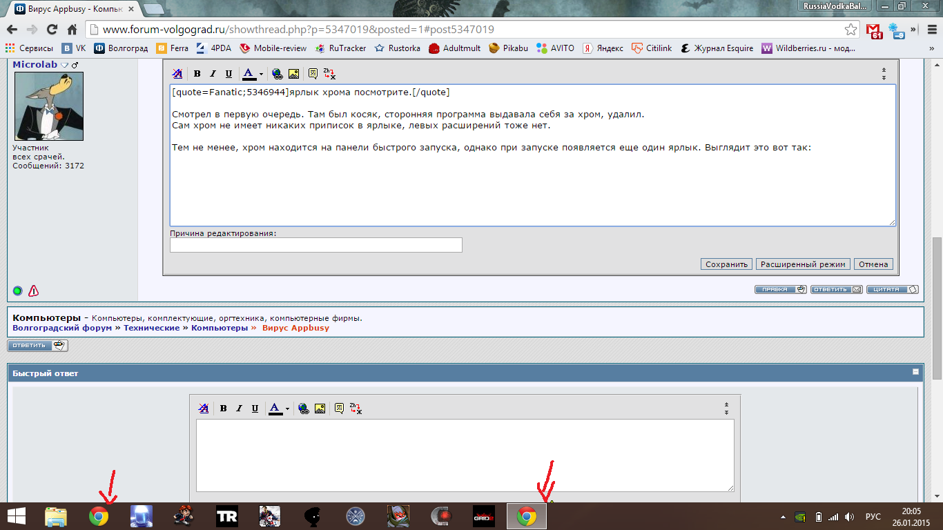 Смотрел в первую очередь. Там был косяк, сторонняя программа выдавала себя за хром, удалил. Сам хром не имеет никаких приписок в ярлыке, левых расширений тоже нет. Тем не менее, хром находится на панели быстрого запуска, однако при запуске появляется еще один ярлык. Выглядит это вот так: