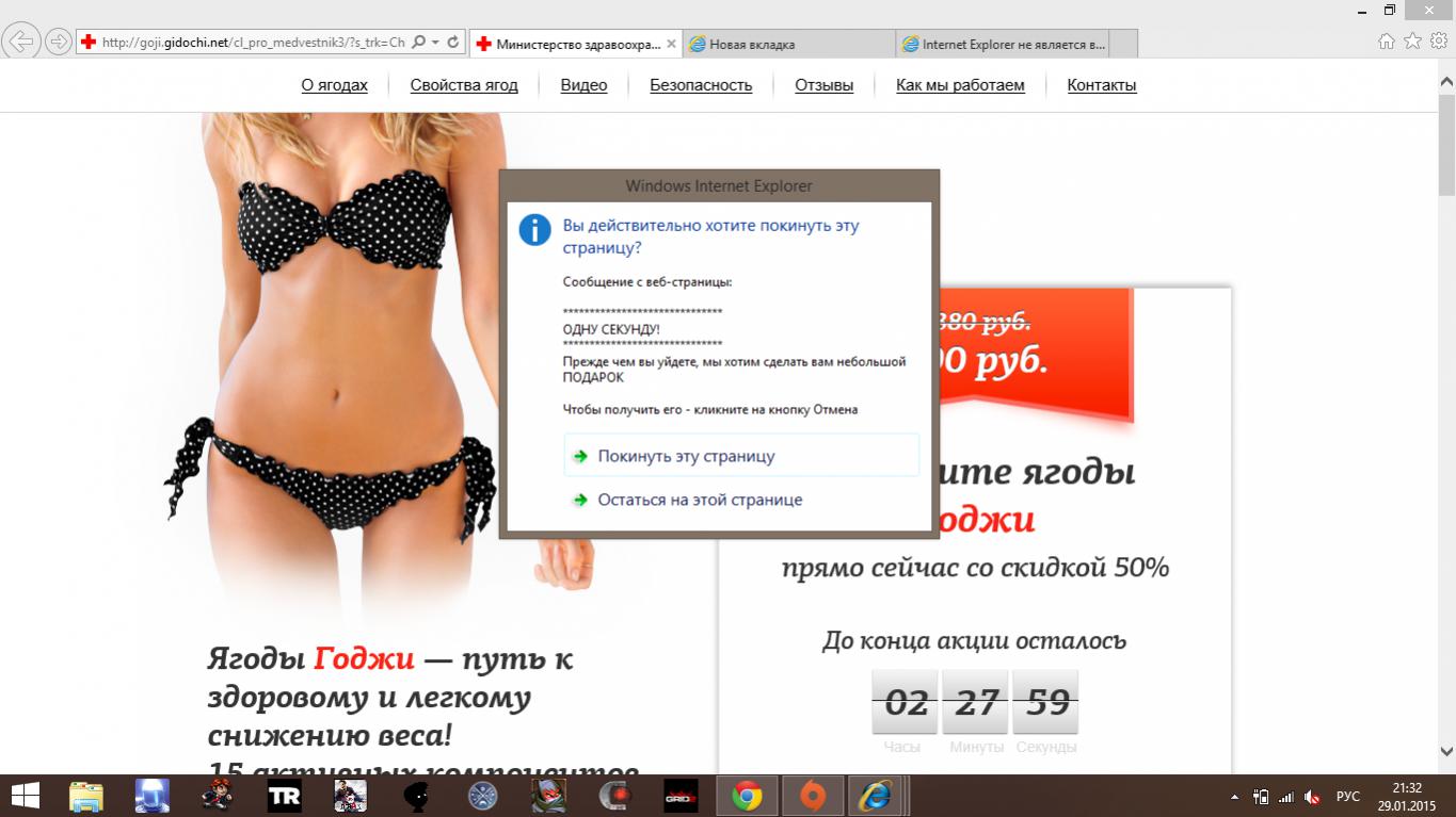 Fanatic, В эксплорере стартовой страницей является сие чудо(как пример, ибо бывают разные), при попытке закрытия окна запускается аудиофайл в стиле "подождите, не покидайте наш сайт".