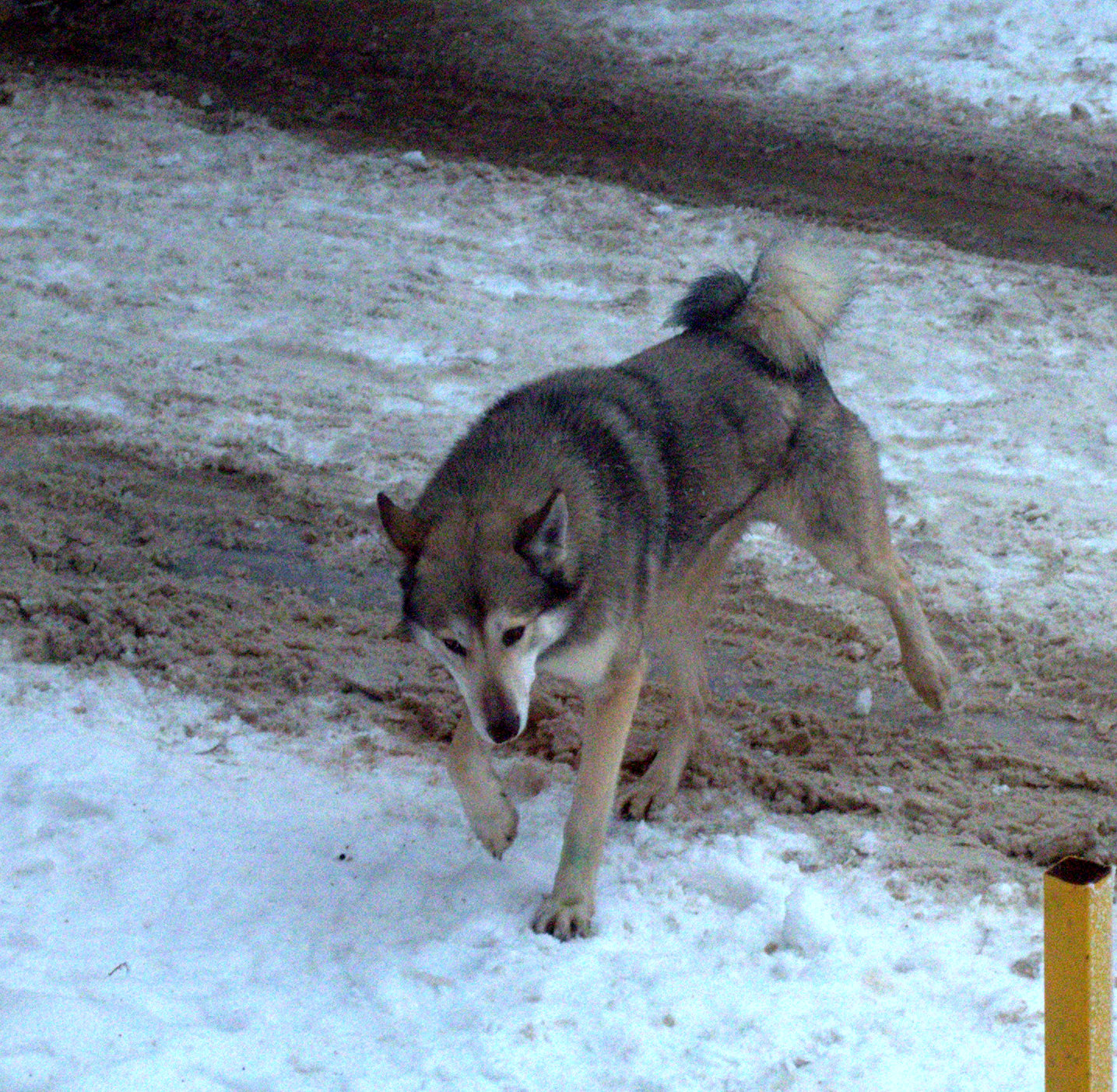 может и его. Первый местный, часто тут бегает, как соседи сказали. А второй, который светлого окраса новенький. Они не вместе, просто тусовали у одной помойки