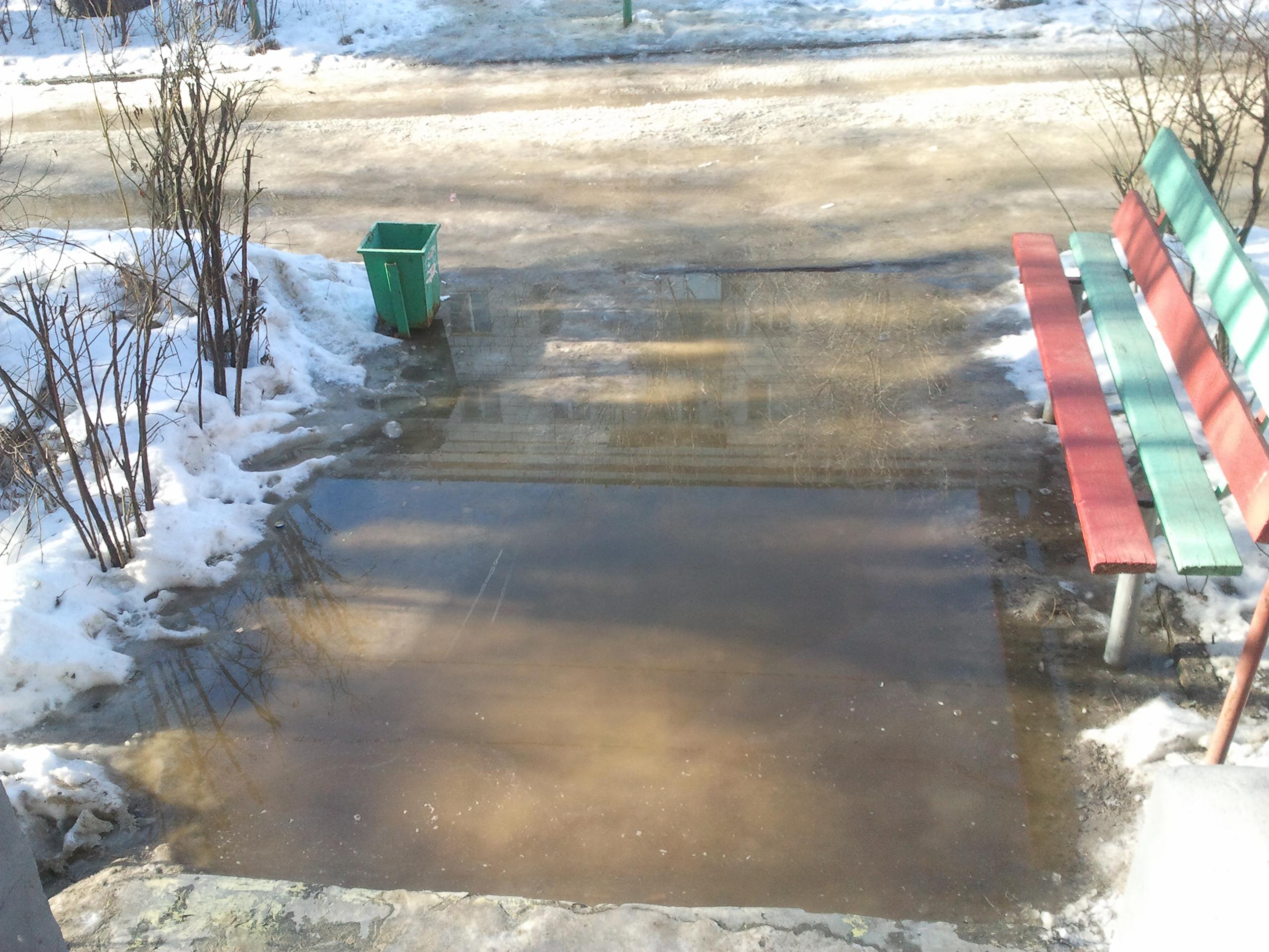 Верно. Снега нет. Один лед. От него особо не лучше. Прилагаю сегодняшнюю фотку. Как раз замерзло все. Как раз вчера написал. Сделал им целую фотосессию во всех ракурсах И указал в заявлении все номера заявок в УК за этот месяц. Хотя через месяц все точно растает. На нашу УК очень редко штраф накладывают.