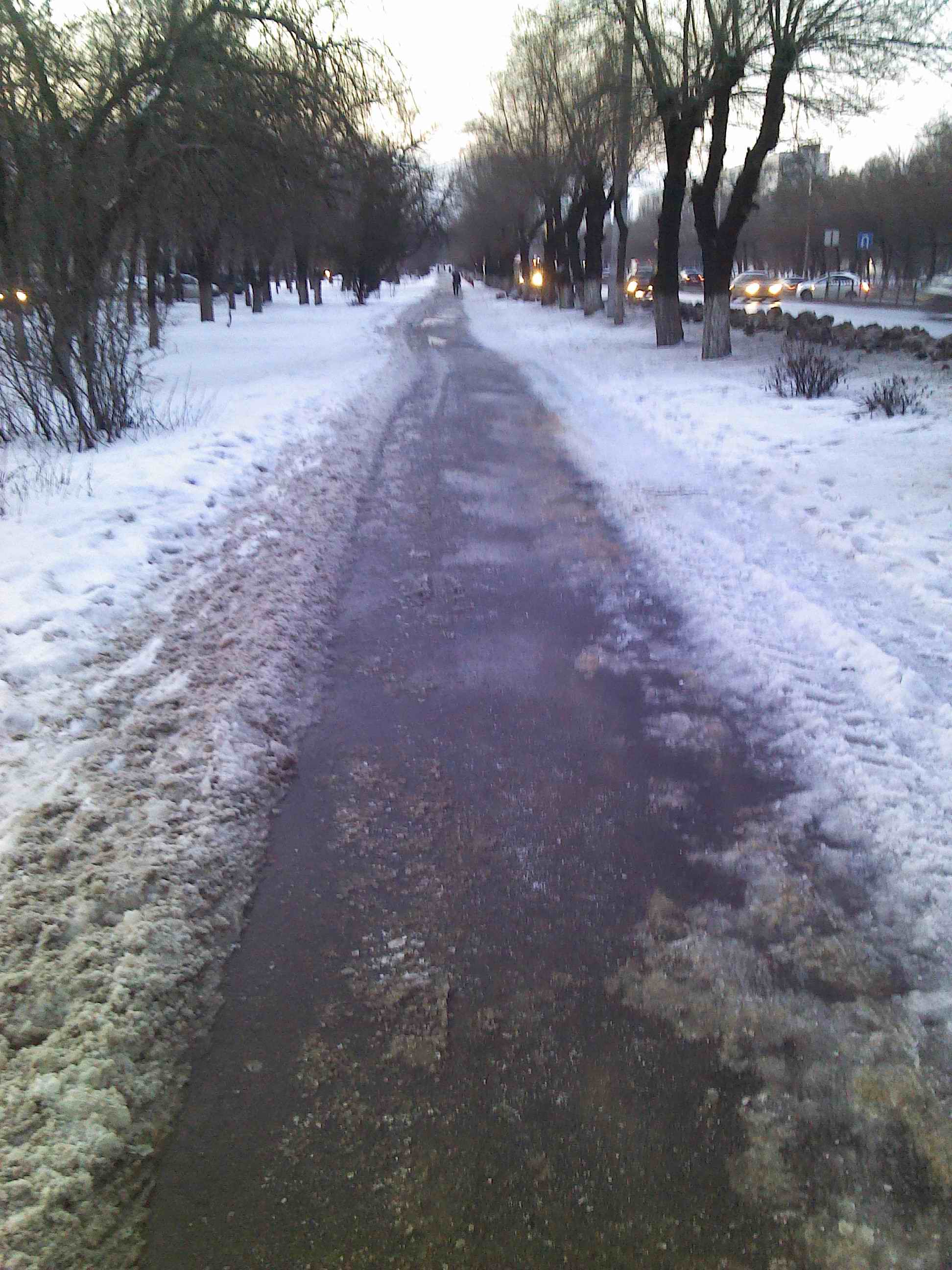 Ага, автомобилистам - не ездить, пешеходам-не ходить...Вчера проехал трактор со сгребалкой. Один раз, сцуко, проехал, содрал частично лед с узкой полосы проезжей части. Из-за жутких ям и колдобин двора это практически ничего. А отрапортовали, видимо, что центр почищен. Хоть бы гад пару раз прокатился этот трактор.