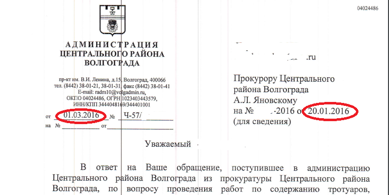 Вчера пришел ответ, что все чисто, снега нет Посмотрите на дату ответа администрацией и дату направления запроса прокуратурой