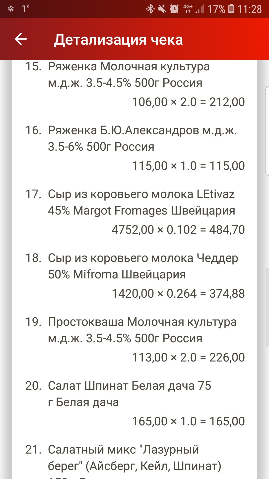 Я вообще не большой любитель сыров... разве что буррату люблю. Жена от них фанатеет, поэтому я в курсе че скока стоит... Ну не видел я таких цен... ладно, при случае сделаю фото с ценами. А кстати вот принтскрин из приложения азбуки вкуса. Смотри пункт 17 и 18 там есть цена за кг. Эт практически чек. Вот еще чек