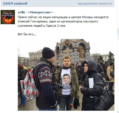 Прямо щас не найду, но киберберкут выкладывал информацию об приезде майдаунов киевских в помощь московским. ---------- Сообщение добавлено 01.03.2015 18:14 ---------- Вот нашла... " Сенсационные материалы о планах организации 1 марта аналога приведшего к госперевороту киевского Майдана выложило в Контакте «Киберополчение». В материалах, размещенных «Киберополчением» фигурируют письма советника премьер-министра Украины Арсения Яценюка Андрея Ревуцкого и одного из организаторов «Белого протеста» Николая Ляскина. http://news-front.in...a-gosperevorot/ " ---------- Сообщение добавлено 01.03.2015 18:16 ---------- Почему не тех? Своих она жалеет.