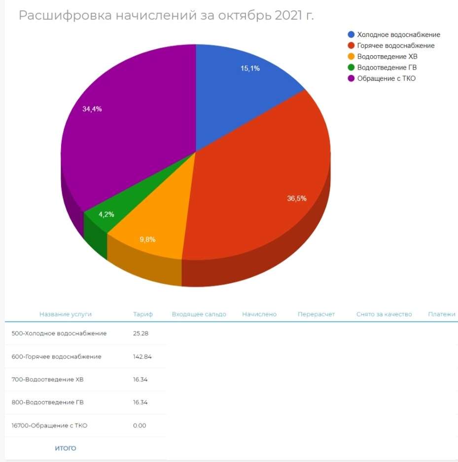 Вот это по нашему за октябрь еще нет начислений, а в графе "Начисления и платежи" уже вверху есть -расшифровка начислений за ноябрь месяц а внизу данные за сентябрь. С ума сойти