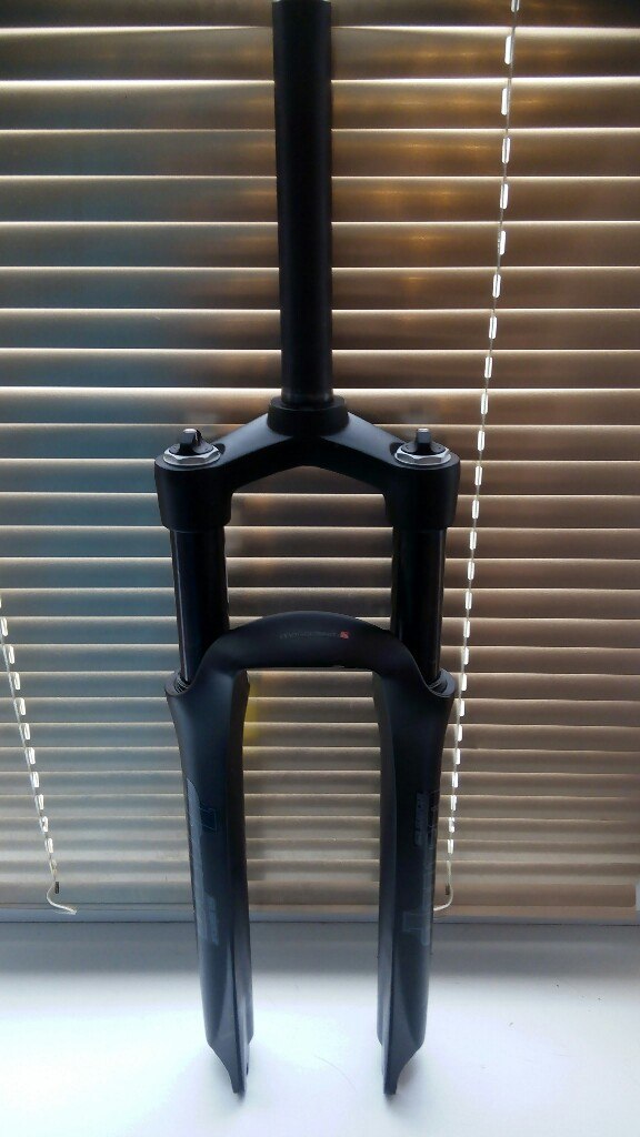 Вилка Suntour SF13 DURO DJ D, ход 100 мм, для велосипедов 26 дюймов, штырь - усиленный стальной, ноги стальные 32мм чёрные, штаны магниевые, корона из кованного алюминия. Регулировки : одна нога - жёсткость пружины + скорость отскока, вторая - жёсткость пружины. Крепление диска - IS стандарт. Вес: 2455 грамм. Цвет: матово-чёрный. Новая, слегка поцарапана, лежала в гараже.