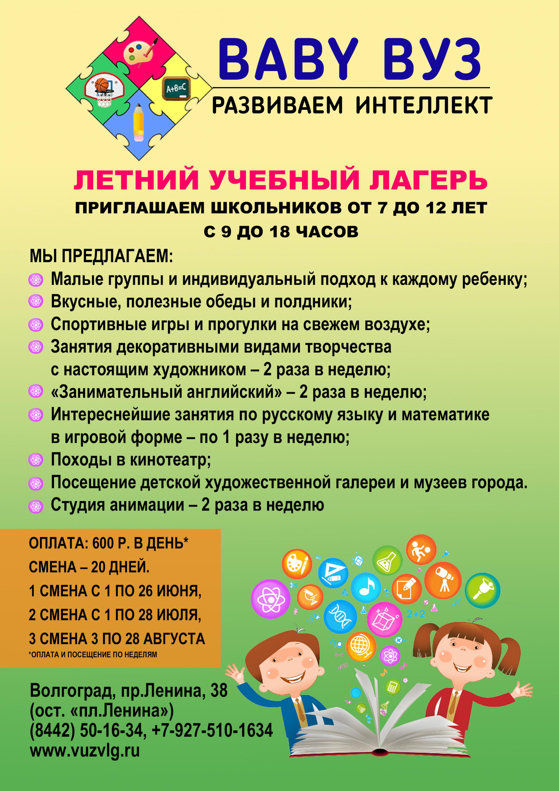 Дорогие мамы и папы! Мы открываем предварительную запись в летний учебный лагерь BABY-ВУЗ!