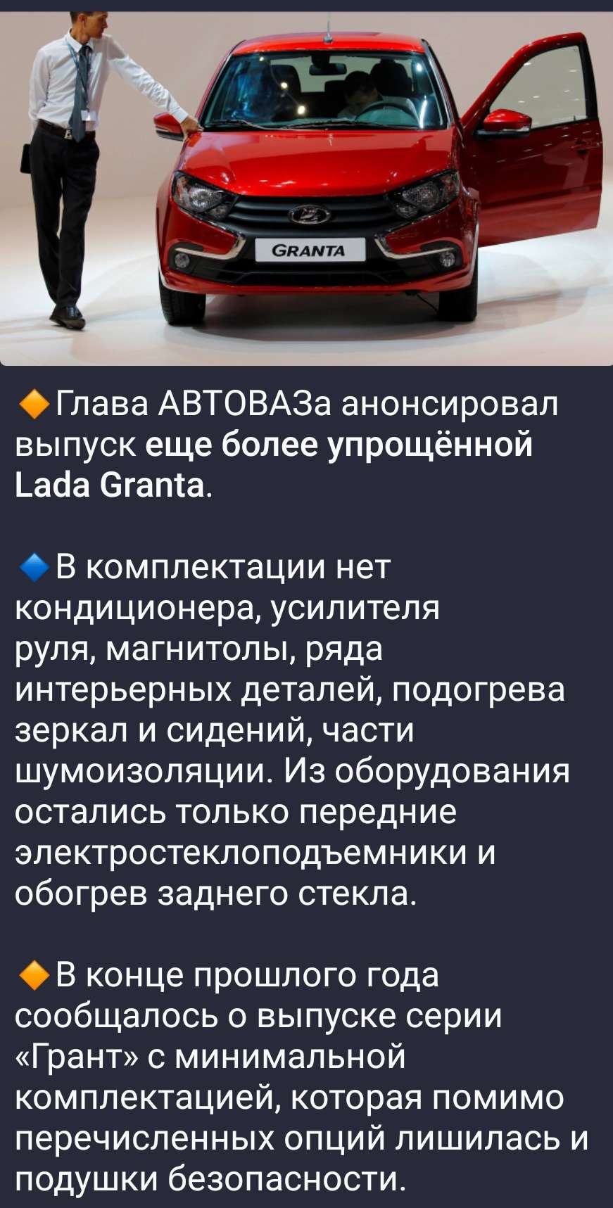Успехи импортозаиещения. Про Lada X-cross: В рамках ежегодной пресс-конференции, проходящей в Москве, президент компании Максим Соколов вынужден был отвечать на вопросы журналистов. По его словам, вместо обещанных 10 тысяч автомобилей было собрано всего 170 штук, и о дальнейшей судьбе проекта Соколов говорить отказался. Зато судьбу первой (и, видимо, последней) партии назвал "достойной" – она разошлась по корпоративным клиентам, а две машины достались самому президенту компании. Остальные выпущенные автомобили начали доставлять дилерам, но с официального сайта АвтоВАЗа вся информация об X-cross пропала. Напоминаем, что "фантомная" модель российского производителя на самом деле представляет из себя кроссовер FAW Bestune T77 с замененными шильдиками. Очевидно, у АвтоВАЗа возникли проблемы с китайскими партнерами, что, помимо прочего, заставляет задуматься о судьбах новой "Волги". Говоря о возрождении производства старой доброй "Волжанки", все почему-то упоминают в качестве технологического партнера китайскую компанию Hongqi. Но она "дочка" той самой FAW Group, у которой явно что-то не складывается с производством в России. А значит летом мы вряд ли увидим модель H5 с оленем на капоте, как предполагали многие. И не факт, что увидим что-то другое.
