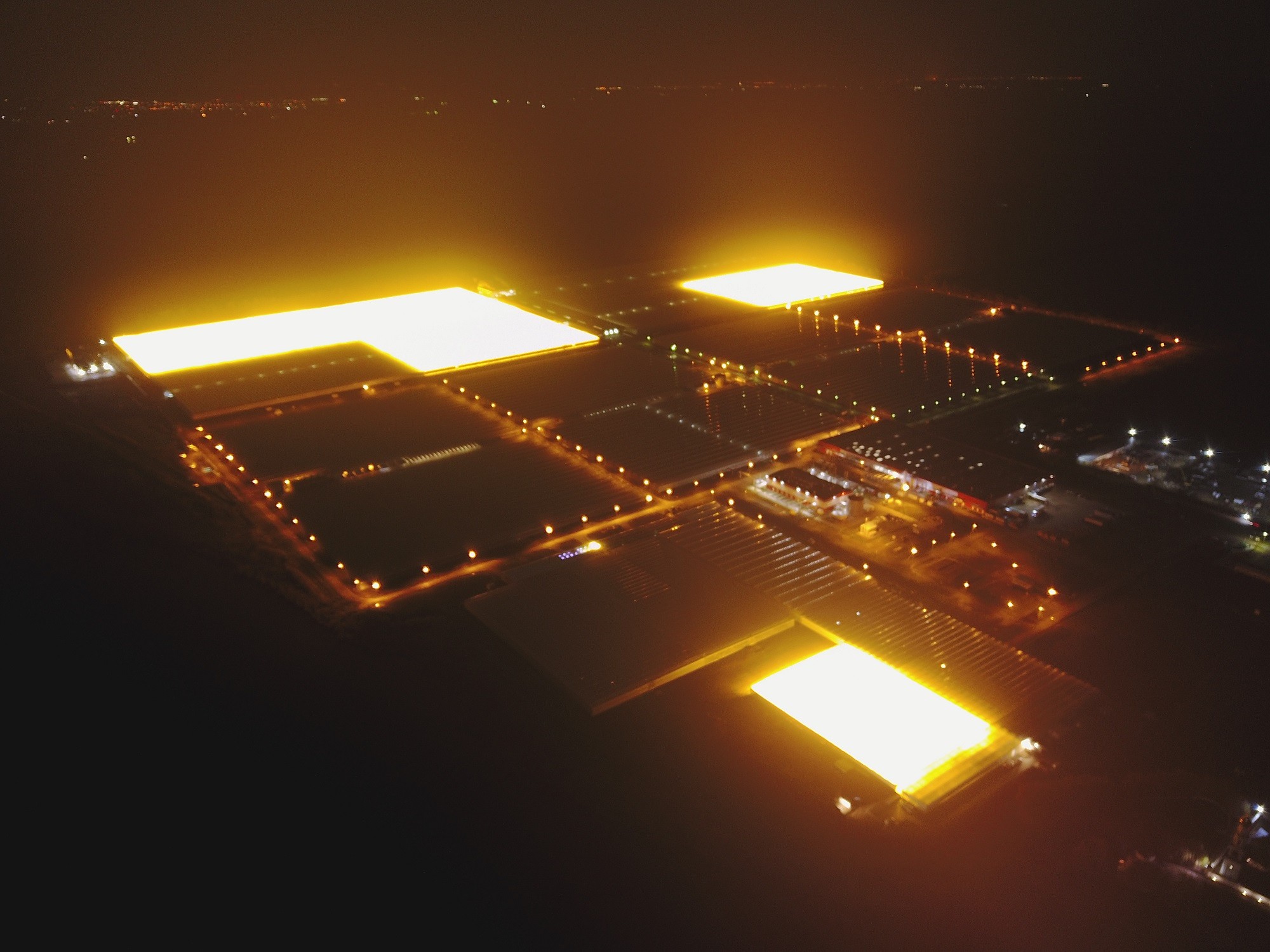 С Тюмени до Шереметьево летел видел несколько похожих теплиц. В Тюмени, Екате, на подлёте к Москве. У нас еще в совхозе "Заря" в Красноармейском тоже такое есть. На горе располагаются. Сверху не видел, но когда по второй продольной мимо проезжаешь ночью, то видно как они небо освещают.