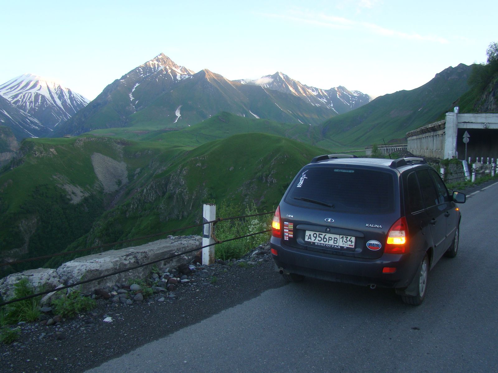 Gamarjoba! Ну вот мы и вернулись из Грузии. Решил написать отчет, потому как впечатлений просто вагон. Поездка планировалась кратковременная. День 1. Стартовали мы в среду вечером, в 21.00, и в 6.30 были уже на границе в Верхнем Ларсе. Вернее, чуть не доезжая, т.к. хвост очереди тянулся далеко. Несколько слов о дороге: поехали мы тем маршрутом, который тут и советовали, через Арзгир. Дорога везде хорошая, кроме небольшого участка (около 60 км) после Элисты. Вот там жесть! Можно оторвать все колеса, так что будьте повнимательнее и не гоните. С виду обычная дорога, прешь по ней 120 кмч, а потом хрясь и посреди дороги яма по пояс. Ну и в Волгоградской области дороги плохие в той стороне, ну да сколько там нашей области то… В КБР и РСО очень много ментов, ну прямо вот на каждом углу. Стоят с фенами, просто стоят, нас никто ни разу не останавливал, пищалка в салоне рулит. День 2. Утро второго дня нас встретило на КПП В.Ларс. Граница. Это самый плохой этап всей нашей чудесной поездки. Итак, подъезжаем мы к хвосту очереди, перед нами сколько то там машин, за поворот уходит вся колбаса. Через 1,5 часа мы продвинулись на 20 метров. Я сходил ногами до КПП, понял, что 300 машин будут такими темпами проходить недели две. Периодически к участникам очереди подъезжали предприимчивые осетины (каждый раз разные) и предлагали пройти границу без очереди. Ценник называли 1000-3000. Я был просто в шоке. Естественно, что желающие находились. В сопровождении этих «решал» и обливаемые всеми сортами поноса из очереди нетерпеливые и малодушные скрывались за перевалом.. Потом очередь сказала себе «Хватит!» и начала звонить во все Кремли , посольства, ФСБ. Просто троллить гайцов и собровцев, которые типа ничо не видят.. Их стали снимать на все виды фото и видео техники, и те с горем пополам навели порядок. «Решалы» пропали, очередь мал по малу потянулась. На пересечение КПП РФ нам потребовалось 5 часов 40 минут. Еще 10 минут мы ехали до КПП Грузии и еще 10 минут проходили ихний КПП. В Грузии, уже за КПП не было НИ ОДНОЙ машины. НИ ОДНОЙ! Зато буферная зона была забита битком. И вот тут и кроется какая-то НЁХ. Дело в том, что собственно процедура перехода границы (общение с властями, досмотры авто) и у нас и у них проходит быстро, минут по 3 -7 на машину. И там и там огромные пропускные возможности, в России даже больше ворот. Но вот с обоих сторон Российского КПП творится ад и израиль, а у грузин всегда пусто и никаких очередей. Как такое получается – непонятно. Но понятно одно: ни о каком-либо «без очереди» , тем более за деньги, в Грузии просто не может быть и речи. Первая мысль, которая посетила мою голову при виде внешней стороны грузинского кпп – современная цивилизованная страна, где все для людей. А то, откуда я только что выбрался, отгрузив пару ведер нервных комков, это не Россия, а что-то типа Ботсваны, где какие-то бородатые упыри решают, сколько тебе и твоей семье стоять в очереди. Такие вот дела. Забегая вперед, - обратную границу мы проходили так: приехали к пустому КПП Грузии, за 15 минут прошли его, и…через 4 часа были «на свободе». Но все эти невзгоды и обиды за нашу великую державу и ее не менее великий народ сразу забываются, когда попадаешь в эту красивую страну…. Никакие фотопиксели не передадут той глубины, высоты, величия и просторов… Так, неспеша, останавливаясь поглазеть, пофоткать, погулять, мы добралис