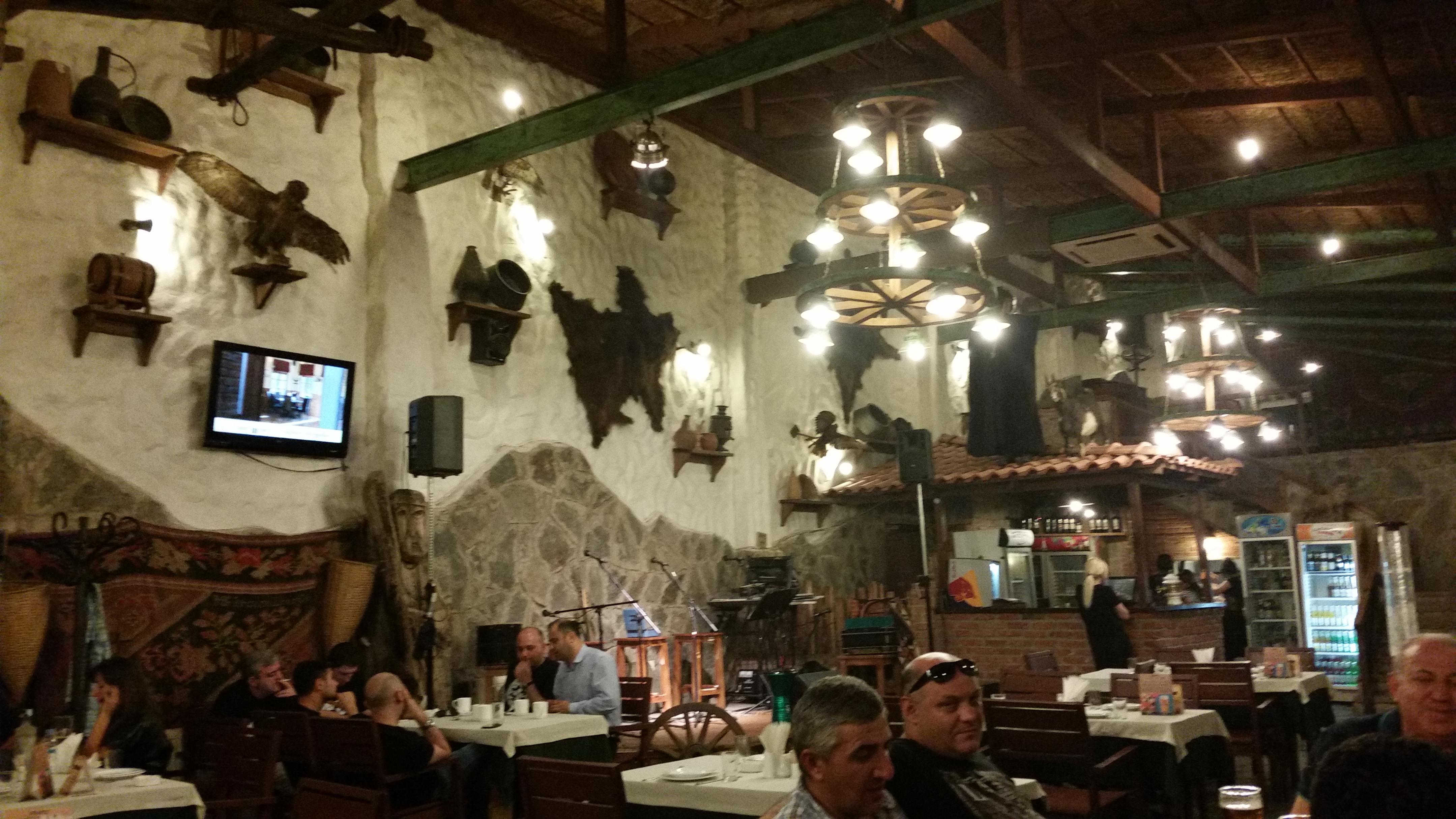 С этого надо начинать турне по Грузии Там бутылки 0,7 есть от 4.5 gel, и 5-ти литровые баклажки от 10.5gel. Видать какой-то пафосный кабак попался. Хинкали - по 50-70 тетри, итого 4 gel хлеб - какие-то вообще копейки наверное, мы его вообще никогда не брали ибо есть хачапури. 2 бокала вина - примерно по 5 лари за бокал. Итого 15 лари. Остальное стоила наверное эта сковородка с мясом. === Таглаура (как-то так называется). Попросите таксиста, чтобы отвез Вас в это заведение. Вот Вам контакт: +995 593 313 626, зовут Георгий, классный парень, говорит по русски. Берет 5 лари по Тбилиси (центр), еще и экскурсию сделает бесплатно с заездами во все уголки центра. Скажите, чтобы отвез Вас туда, куда возил в начале июня "русскую пару, которой он помог найти отель возле тутовника". Не пожалеете. Только садитесь не на улице, а внутри, на первом этаже. Там живая грузинская музыка по вечерам. И обязательно передавайте привет Георгию от туристов из Волгограда, которым он карту подарил! (уверен, он нас помнит!)