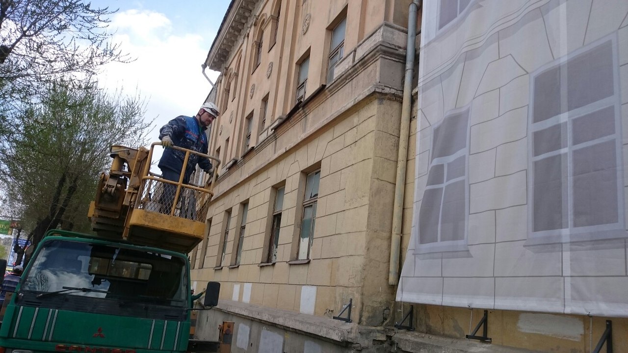В Москве таких фасадов пруд-пруди, но они повешены специально в целях защиты окружающей городской территории от строительной пыли в период ремонта фасадов. А у нас значит это просто муляж ?
