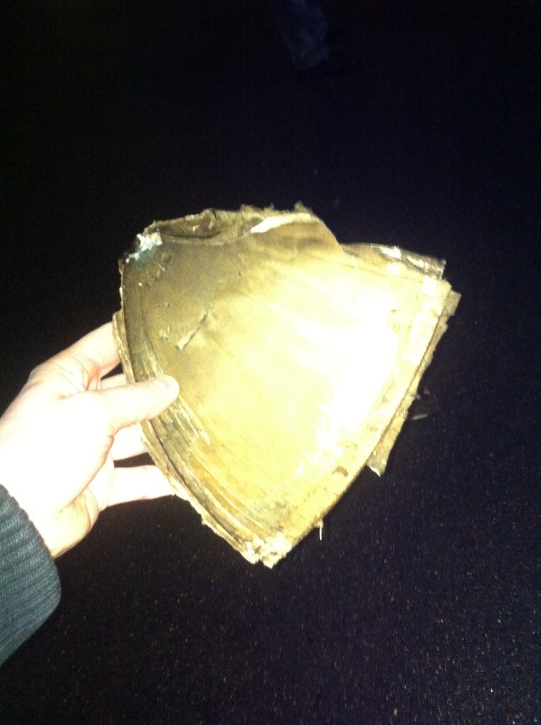 Это осколок от салютного заряда. У нас возле дома только в этом году салюта не было. А так, постоянно почти такими (чуть поменьше) осколками вся округа усыпана была. Самое интересное, что никогда не слышал, чтоб кому-то на голову что-то падало. Загадка, однако...