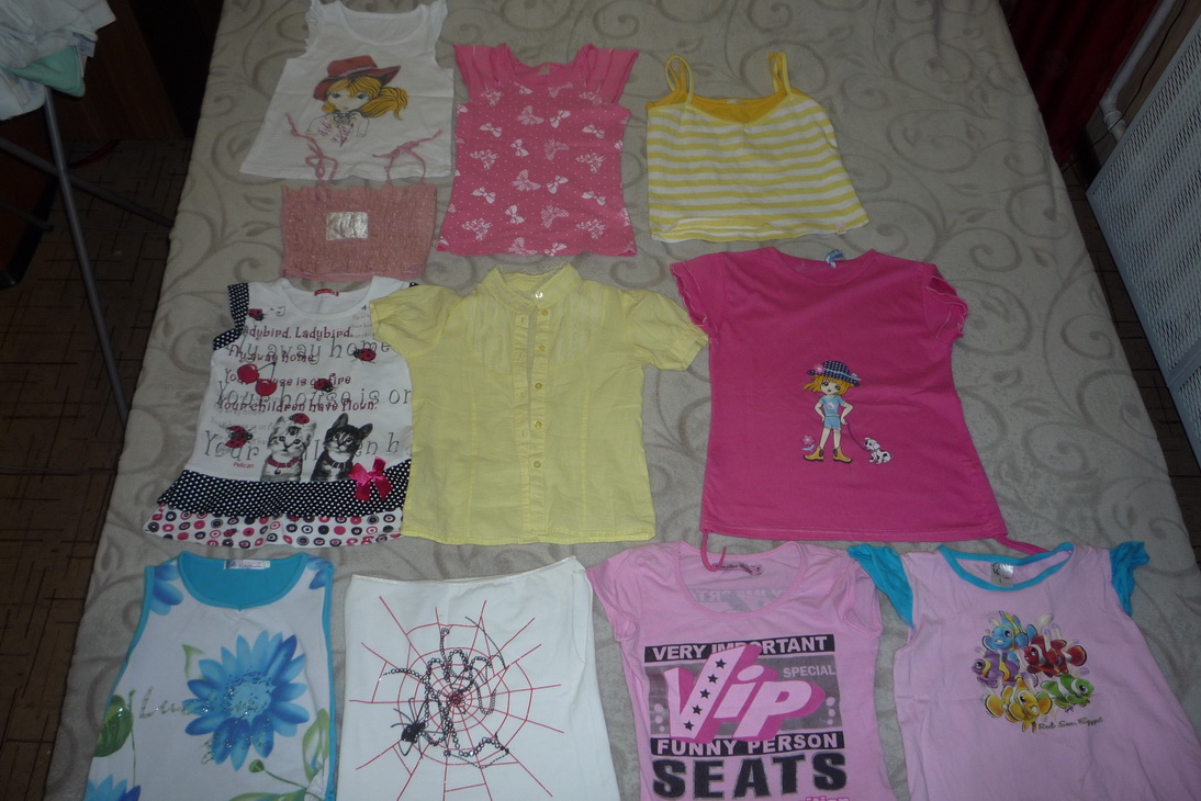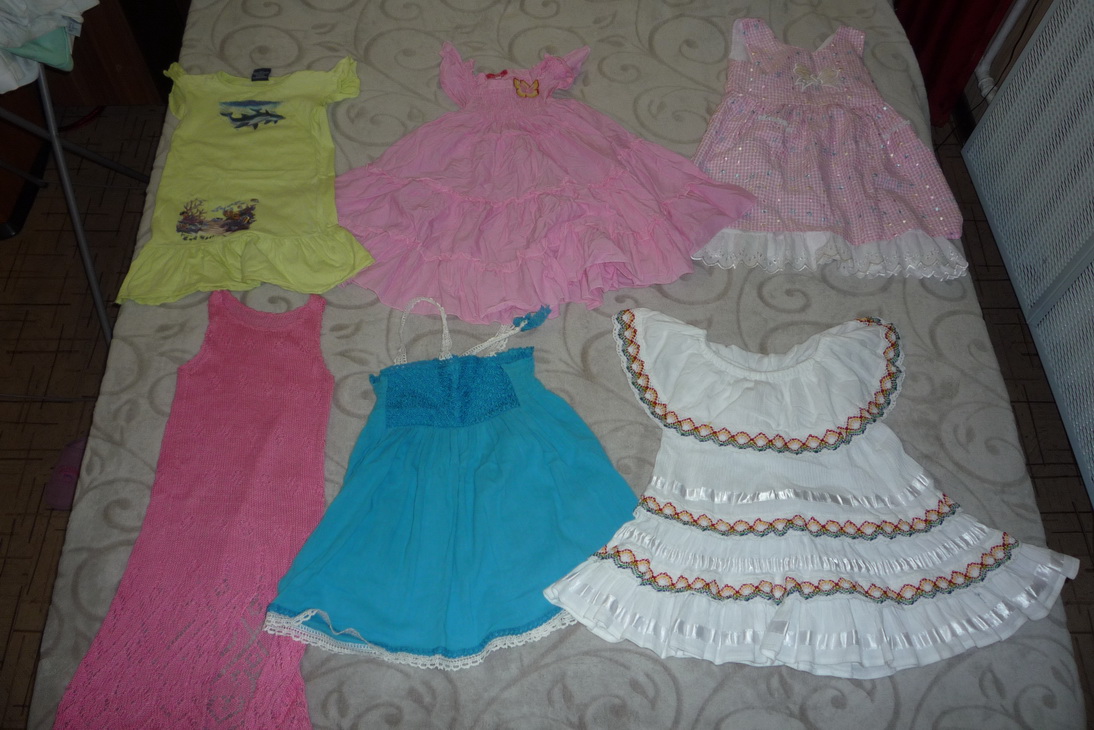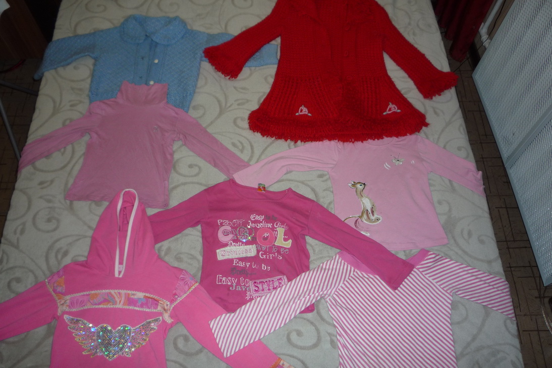 Выкладываю результаты очередного разбора шкафов. Все вещи в отличном состоянии, все на рост 116-122, на девочку средней комплекции. Любое платье отдаю за 100 р. Любая юбка/шорты/брюки - также 100 р. Любая кофточка-футболка с "групповых" фото - 50 р. Исключение составляет длинная красная вязаная кофта с длинными рукавами - ее отдаю за 150 р. Розовая кофточка с жабо (см.последнее фото) - 300 р. Идеальное, абсолютно новое состояние, не разу не была б/у. Очень красивая, приятная к телу, для походов в школу в теплое время года подойдет отлично. Будете брать много вещей - договоримся о скидке. Что интересует - спрашивайте.