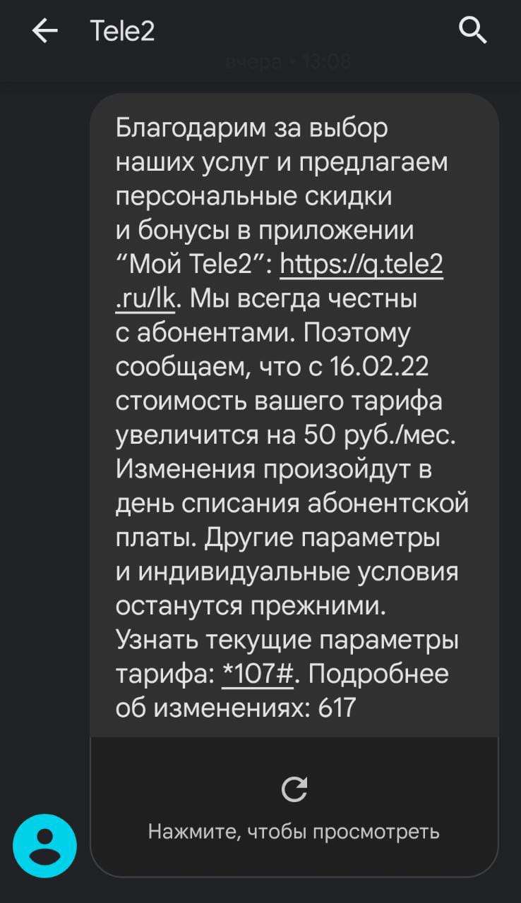 В связи с тем, что в пакете "Мой разговор" нет SMS, а также звонков на городские номера и мобильные других регионов, решил уйти в "Тинькофф Мобайл". Симку привезли во вторник, ждал перевода, который должен был состояться аккурат 31 декабря, а вчера позвонили из "Теле2", выяснили причины ухода и предложили остаться на следующих условиях: спецпредложение по тарифу "Мой онлайн+", а именно стоимость пакета не 500, а 150 рублей, при этом параметры тарифа неизменны – безлимит на "Теле2", 650 минут на других операторов России, 25 гигов интернета ПЛЮС дополнительно 100 SMS. Доплатил 150 рублей абонплаты и сразу же перевели на новый тариф. В "Тинькофф" в пакете было 4 гига, 200 минут звонков на все номера (на тинькоффские анлим) и допуслуга безлимитные SMS за 49 рублей, в сумме выходило бы 347 рублей. Доволен как слон.
