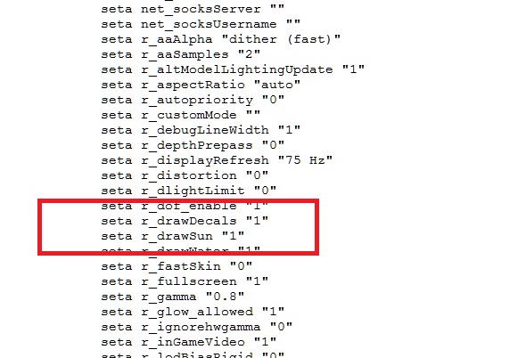 Нужна помощь. После переустановки винды стало выкидывать из игры типа параметры Drawsun=0 и Drawdecals=0 а нужно 1. В файле Config_mp все стоит как надо. Перепроверил 10 раз. В чем может быть дело? Как исправить это? Может кто подскажет?