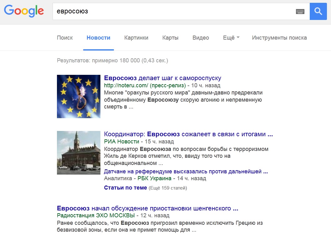Новости по определённым ключевым словам я обычно смотрю через гугл. https://www.google.ru/search?q=жан+клод+юнкер&tbm=nws Посмотрел. Заскриншотил выдачу. Знаешь, по-моему, результат не в твою пользу, а в мою.
