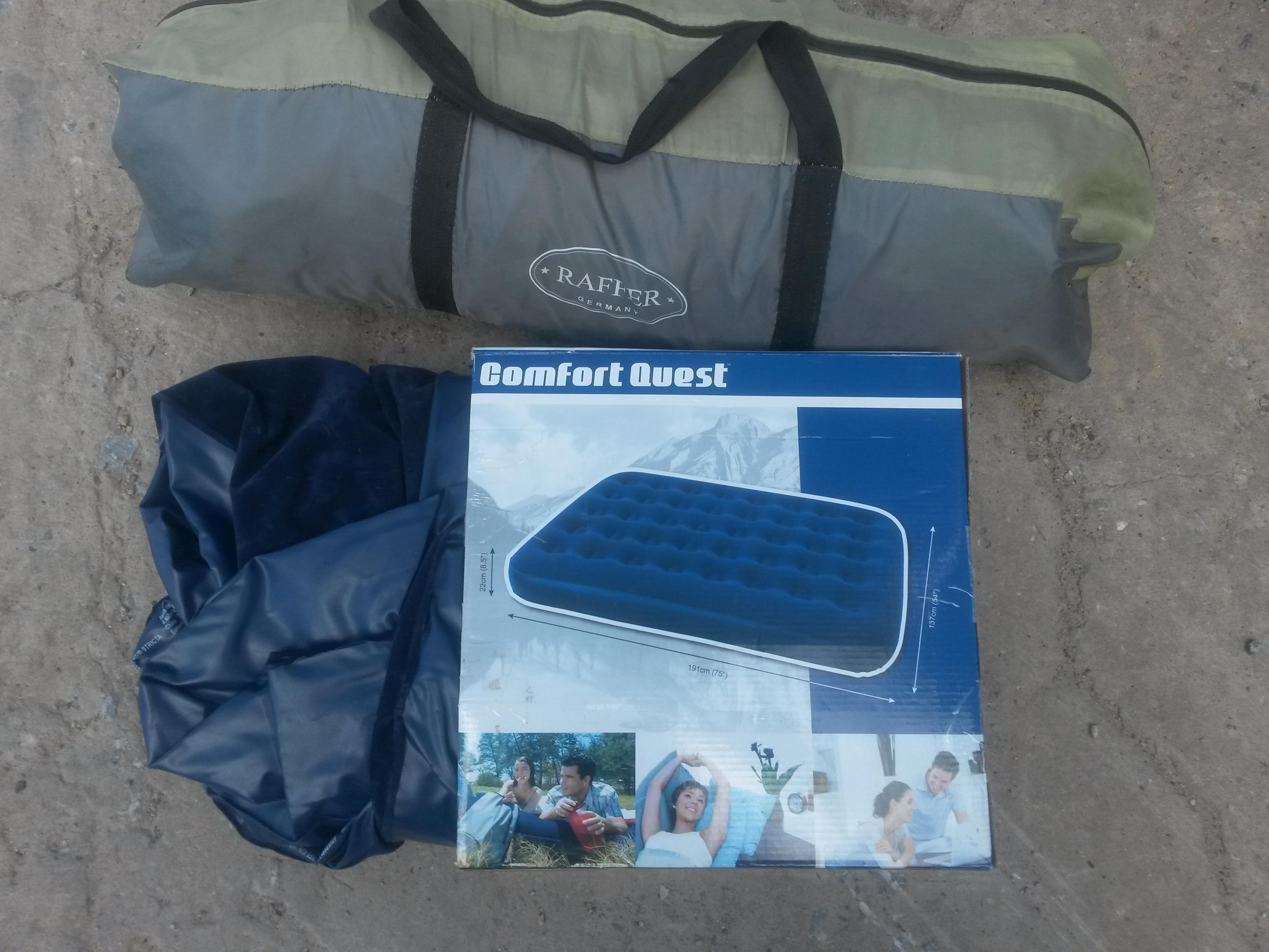 Палатка в хорошем состоянии б/у, плюс матрац почти новый ( 2 раза на нем спали) Размеры Д191*Ш137*В22 см! Палатка целая нет порезов и рваных мест, матрац не спускает! За все 1000 руб! Палатку в гараже не стал натягивать,поэтому вид такой!
