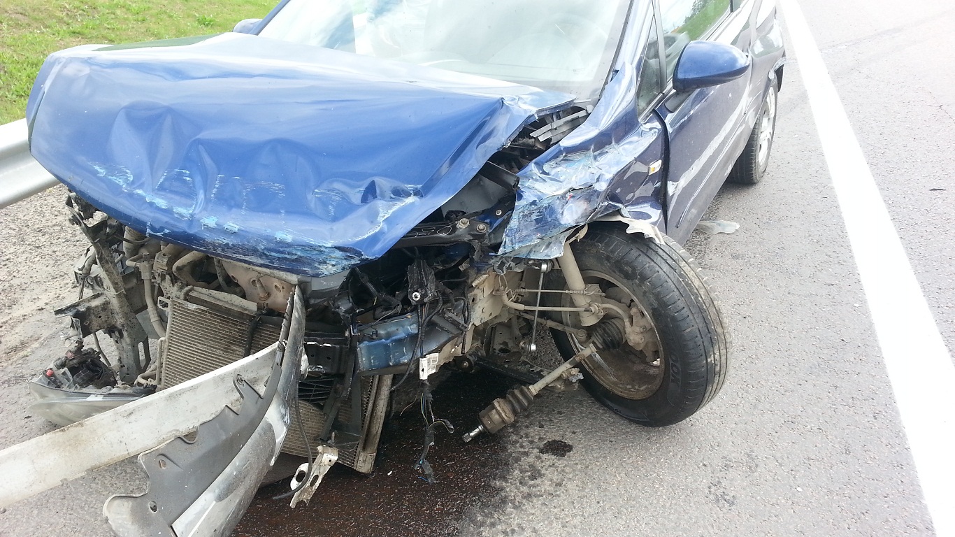 Развернуло на трассе - ударился о металлическое ограждение.