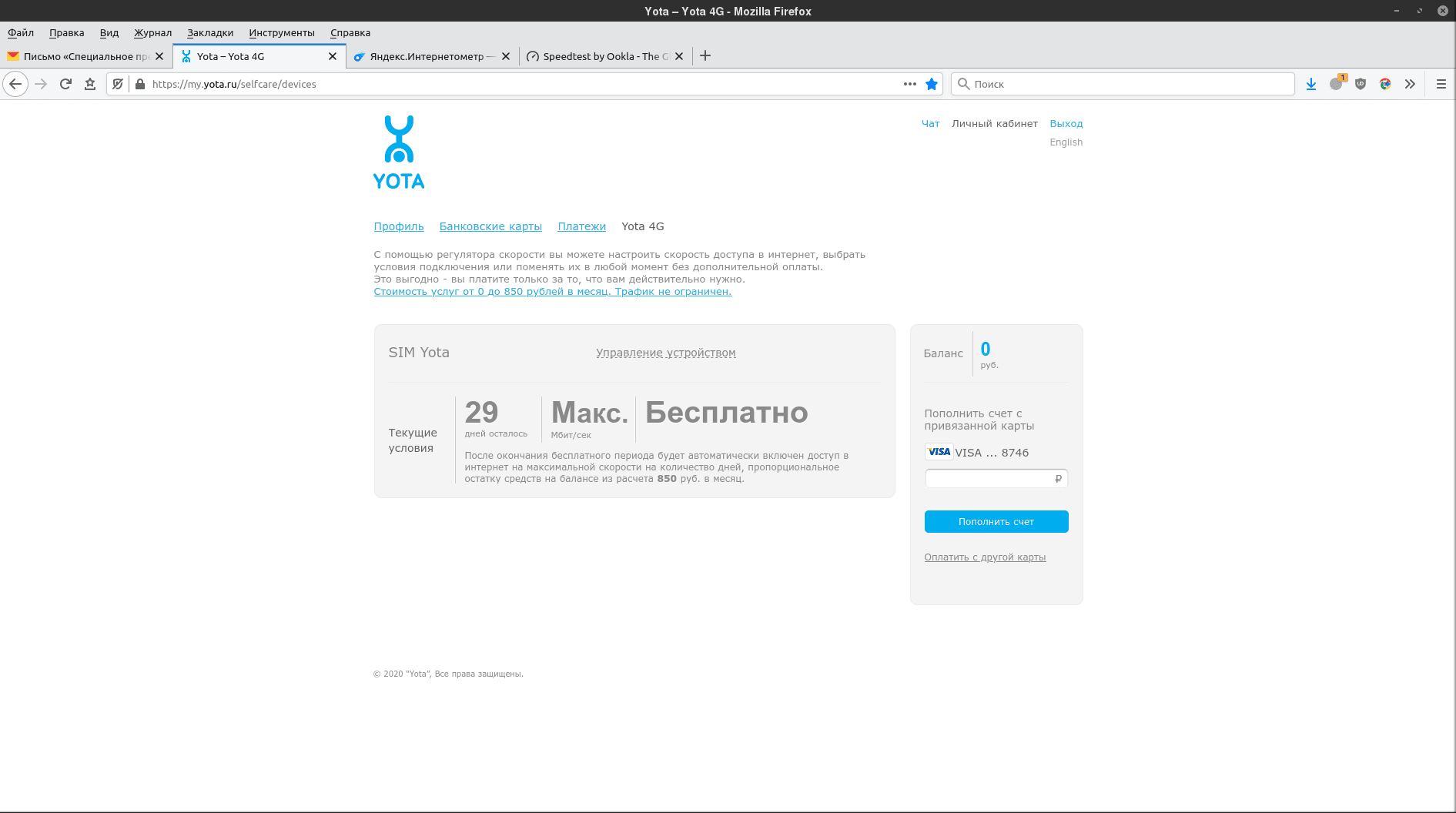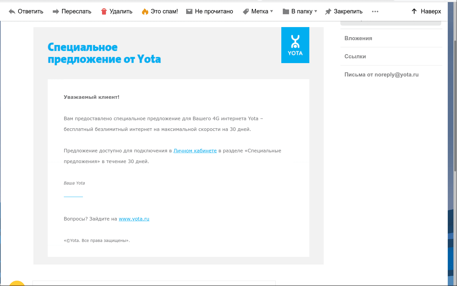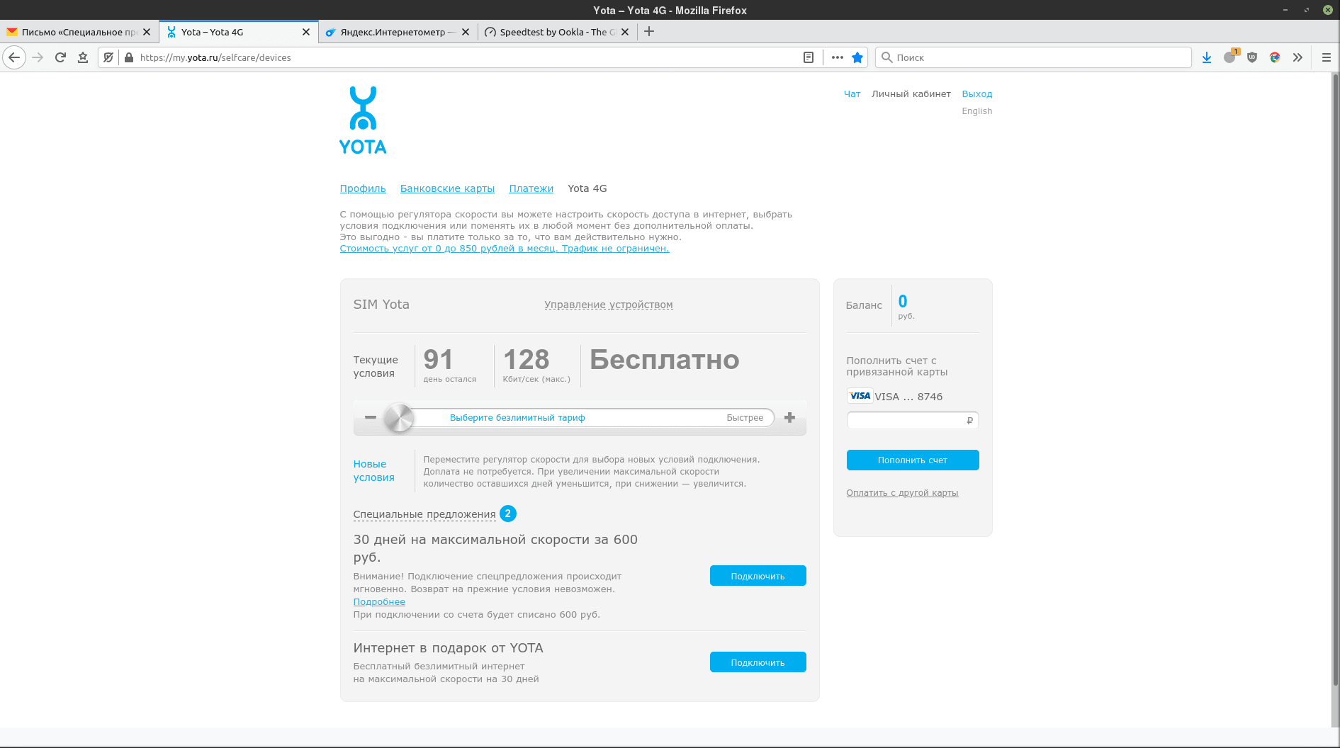 ВНЕЗАПНО пришло письмо от ёты. Хотел было проигнорировать, но любопытство взяло верх. Нажал на подключить подарок. Подумал было, зачем мне третий безлимитный интернет, но вдруг дошло: я же могу невозбранно целый месяц проверять, это у патефона аппаратные проблемы с задолбавшими приостановками трафика и тошно всем, или таки чисто хапужеский оверселлинг. А твой фальшивый «безлимит», дорогая ёта, с совершенно бессовестным удушением трафика по протоколам openvpn и pptp можешь засунуть себе в голубенькую жёппу.