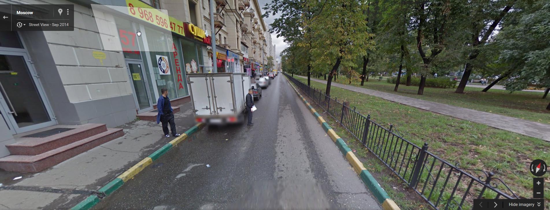 Да никаких проблем. Только конусы стоят на встречной полосе. Далее виднеется заборчик голубой - это гараж там куча грузовиков, автобусов и прочего. Вот для поправки глазомера сколько там места при отсутствии припаркованных при движении вид обратный предыдущему точка та же.
