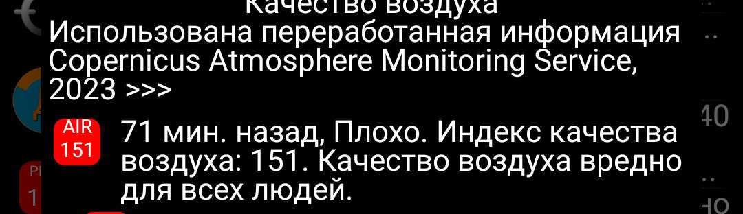А что там сегодня за показатели качества воздуха? Весь день оранжевый уровень, типа опасно, но не всем А сейчас глянул, вообще красный уровень, типа опасно для людей и тут вон пугали... https://v1.ru/text/ecology/2023/01/15/71976212/ Волгоградцы в соцсетях жалуются на качество атмосферного воздуха. Люди уверяют — в воздухе присутствует пыль, песок и мелкодисперсные примеси. сейчас не видно ничего, но днем вполне такое себе ясное небо было и воздух чистый заврались?