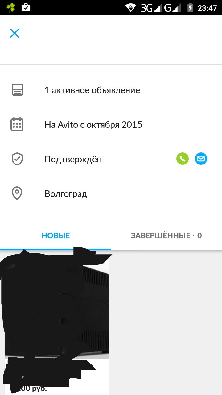 olegun, нашёл это объявление. Синий кружок у меня чёрно-белый, под именем Ирина Подтверждён у меня только зелёная трубка, конверта синего нет. А главное профиль не раскрывается. В приложение пробовал открывать данное объявление заходя в свой аккаунт и не заходя. Реакция - как написал выше. Даже интересно стало. Может нужно одновременно быть ещё в соцсети законектенным ?! Или вип-статус на ави** есть ?