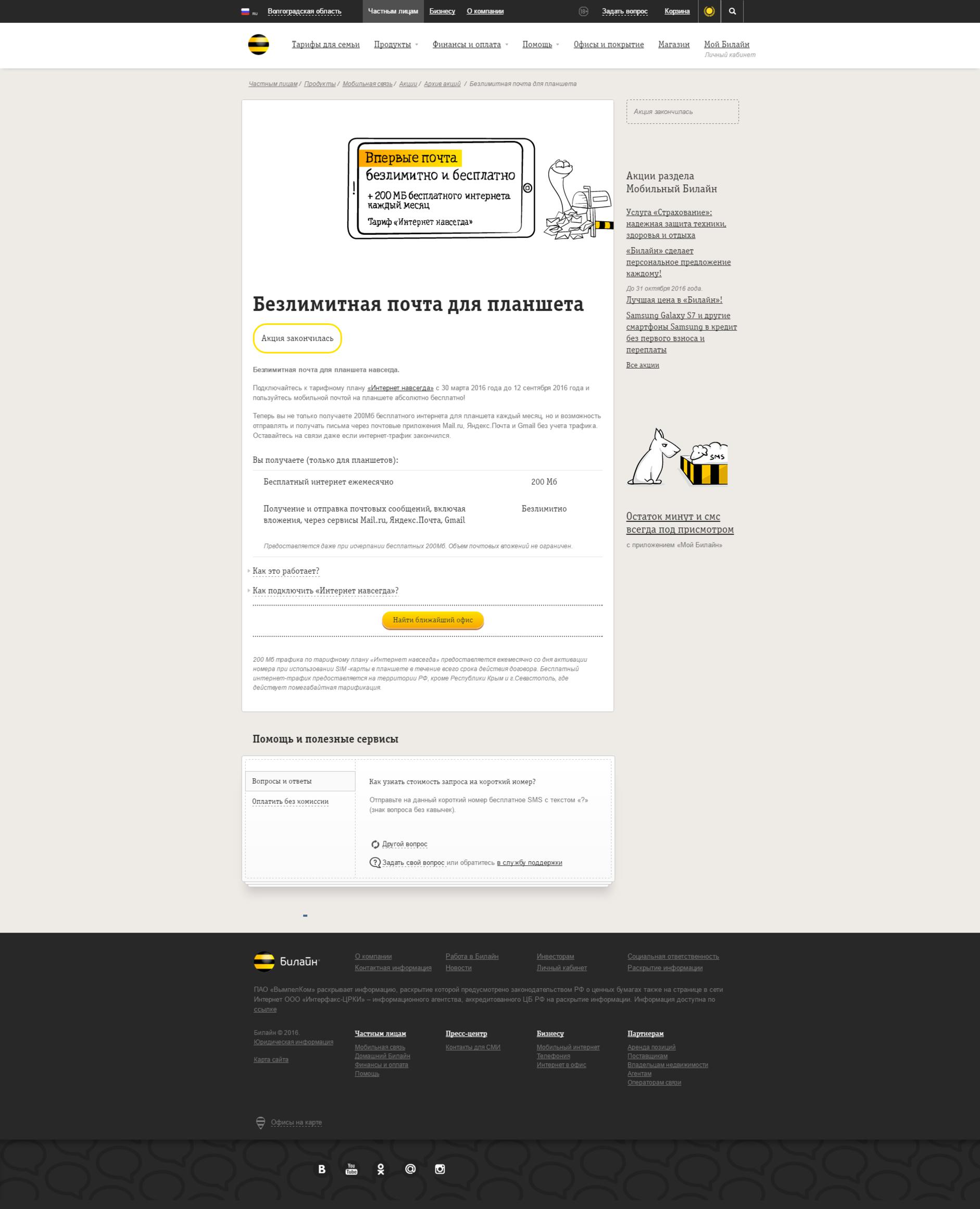 Новый способ отъема денег С 12 октября 2016 года клиентам «Билайн», перешедшим или подключившимся к тарифам предоплатной линейки «Всё» и активно использующим высокоскоростной мобильный интернет в сети LTE, будет автоматически подключаться новая опция «Безлимит в 4G». Это выгодно: первые два дня бесплатно, далее абонентская плата составит всего 3 рубля в сутки. http://volgograd.vimpelcom.lenta.ru/smi/news/details/bezlimit-v-4g-na-vse/?category=0