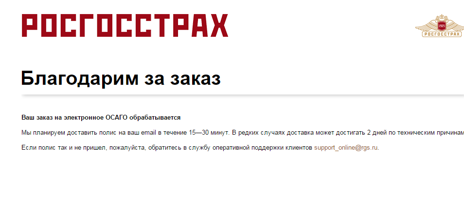 Прошло 3 часа - Полиса нет, уже звонил и писал в техподдержку, ответа пока нет. На Воронежском форуме только нашел тех кто пару дней назад страховался и были такие же проблему, так вот у них на следующий день только полис пришел. Если что завтра еще позвоню в техподдержку. Если через 2 дня не будет - буду писать в правоохранительные и надзорные органы
