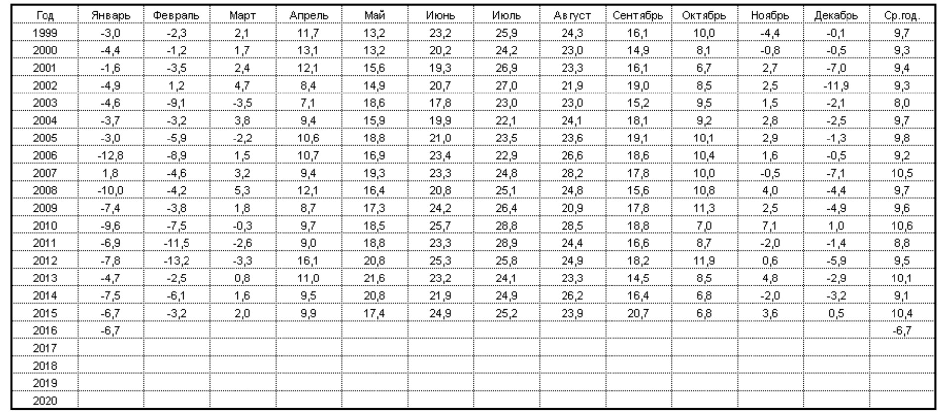 vrio, а что у нас со средней температурой за январь? Жду в табличку дополнение. И подаю жалобу на свои +38% при примерно одинаковых климатических условиях за несколько январей. Эти сказки жилинспекции про холодный январь не для меня.