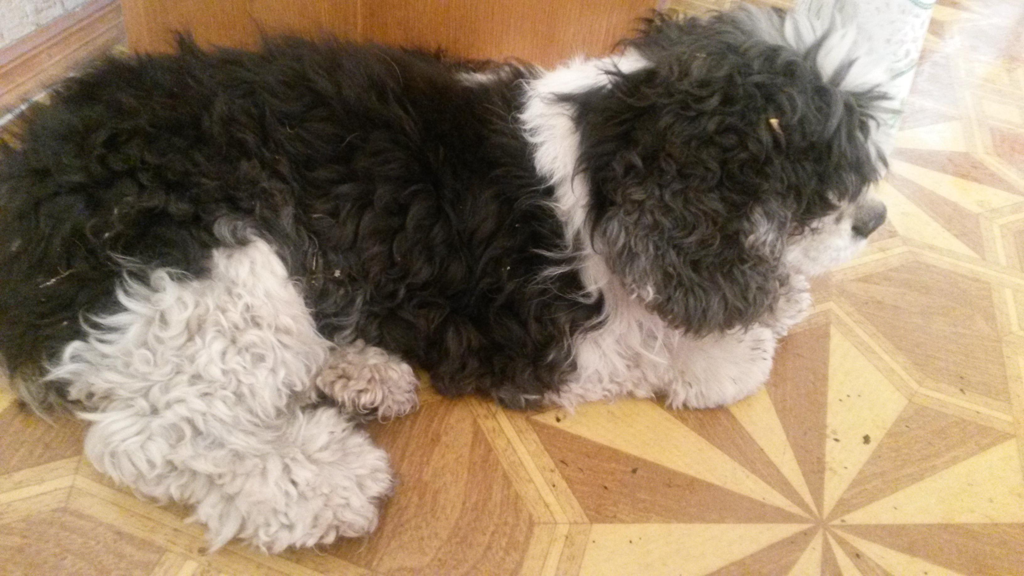 собакин оказался просто прелестным, умненьким и ласковым. был явно домашним, знает все правила приличного поведения))) несмотря на то что практически слеп и глух- замечательно освоился на новом месте жизни, социально так сказать полностью адаптировался. спать ходит к кошкам под бочок- те вокруг него калачиком сворачиваются. кашель вылечили, теперь предстоит стрижка и банька) две недели тщетно искали предыдущих хозяев- безрезультатно... отвратительно когда на улицу выкидывают старых и не совсем здоровых. повезло ему к нам прибиться. и еще, не сочтите за наглость- но если кто может помочь кормом для пожилых собак с проблемными зубами - хозяйка будет очень рада.