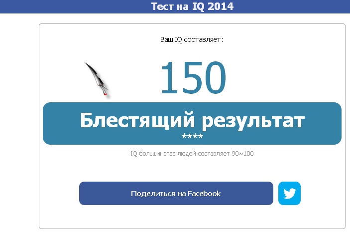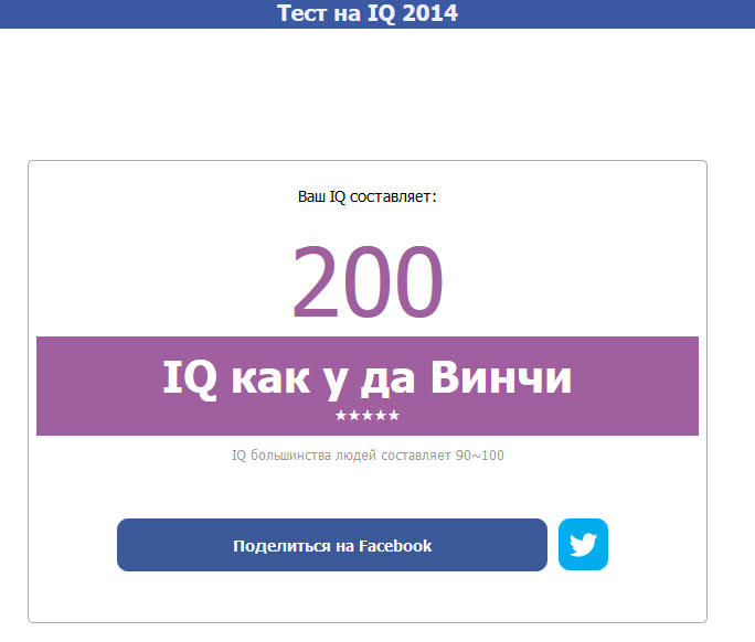 это как стройнящие зеркала в примерочных. или размеры в штальмане - призваны польстить потенциальным покупателям - дать им почувствать свою исключительность и неотразимость. собственно вот он: Тест на IQ 2014 сидеть прямо. дышать ровно. чиать про себя стихи)