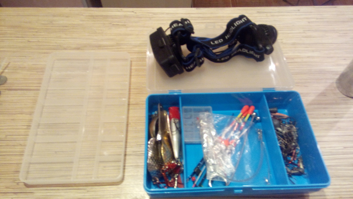 Продаю набор из рыболовных вещей: Попловки, блесны, попперы, спец.ножницы, тройники, обычные крючки(набор), поводки (3 штуки 210 мм), грузила, налобный LED-фонарик(с з/у). Бонусом идет к нему кейс. Также маска и книга по ловле хищника на спиннинг.