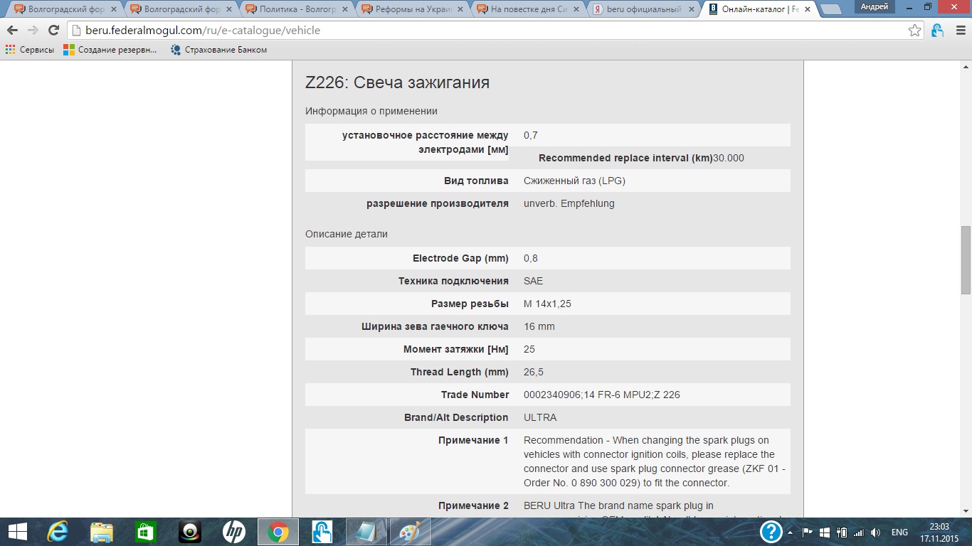 на картинке 1 выбирается вид топлива - бензин, марка, модель, двиг. картинка 2 отображает подходящие свечи из них z226 - под LPG (и естественно бензин) картинка 3. Еще вопросы будут? Кстати китайский бош продолжает ездить на "неисправном электрооборудовании", "перетянутыми прямым свечным ключом и кривыми руками" с наверняка уже давно "лопнувшими изоляторами" в том числе от перегрева от "недотянул" свечами желания выкручивать и смотреть пока нет, ведь и проблем нет