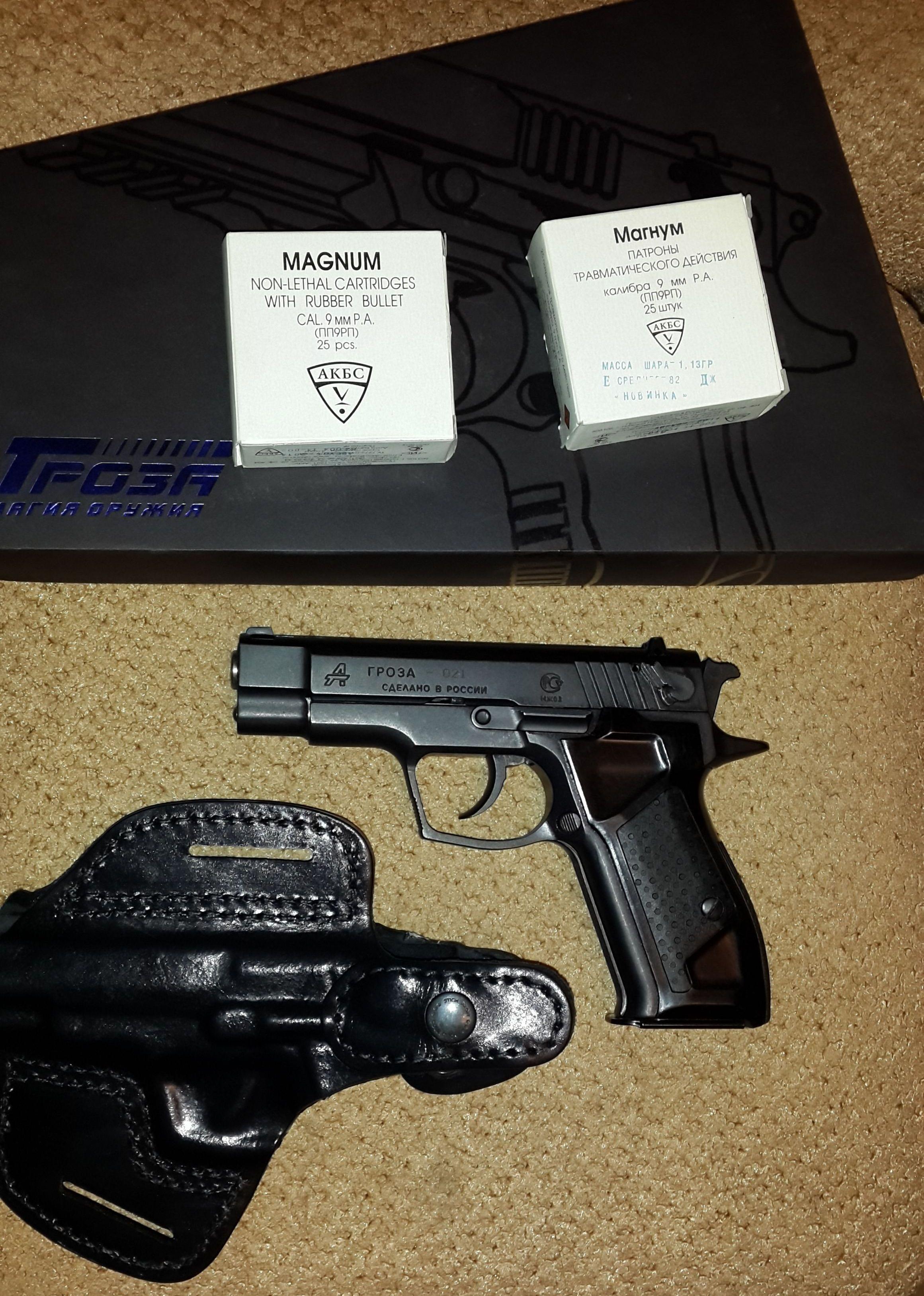 Продам травматический пистолет Гроза 021. Октябрь 2013. Ствол EVO, стреляет любыми, даже самыми мощными патронами 9 Р.А. Полностью стальной корпус. Состояние идеальное как с магазина, без потертостей и царапин. Настрел 40 патронов. Почистил, смазал. Комплектация: 1) пистолет(коробка, чеки) 2) 1 магазин 3) 2 пачки АКБС Магнум 14года (самые мощные из доступных) 4) кобура качественная (на ремень). За всё хочу 30 000 т.р. Осмотр строго при наличии лицензии и паспорта. Оформление через ЛРО г.Волгограда. PS в магазинах их уже не осталось, цена последняя была 40, спрос будет только расти. А тут фактически новая с отличным дисконтом.
