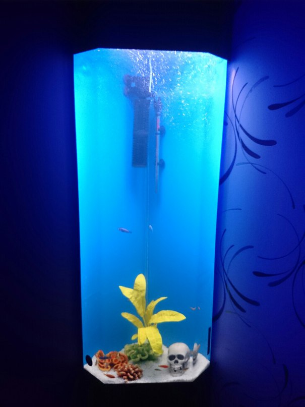 Продаю акриловый аквариум .Сделан колонной .Прекрасно подойдет как для квартиры,так и для офиса или для тех,у кого дефицит свободного места.Очень крепкий,поэтому у кого есть маленькие детки,в самый раз.Размеры и объем указаны на фотографии.Цена нового 69000.производитель "лагуна".Продаю без животных.Хочу 25000.Возможен торг.