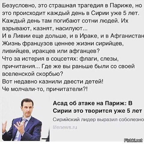 1)Очень понравилось высказывание. 2)Только египтяне вспомнили, что помимо лягушатников, еще 2 страны недавно потеряли бОльшее количество людей. 3) Не так давно в Кении, исламанутые расстреляли 147 студентов. Кто нибудь видел краски кенийского флага? Ах, да это же второй сорт, недочеловеки. Куда им до просвещенных гейропейцев, уж не говоря про "исключительную нацию"