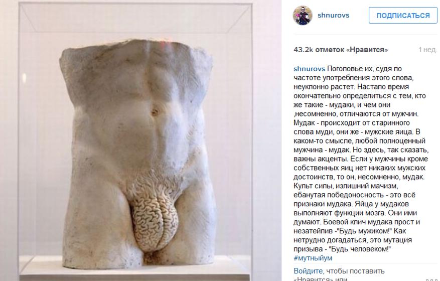 Ub34,а почему про этот клип забыл https://www.youtube.com/watch?v=CACFIGzRiGM А если серьезно,Шнуров гораздо глубже и тоньше чем это кажется на первый взгляд людям недалеким... Шнур
