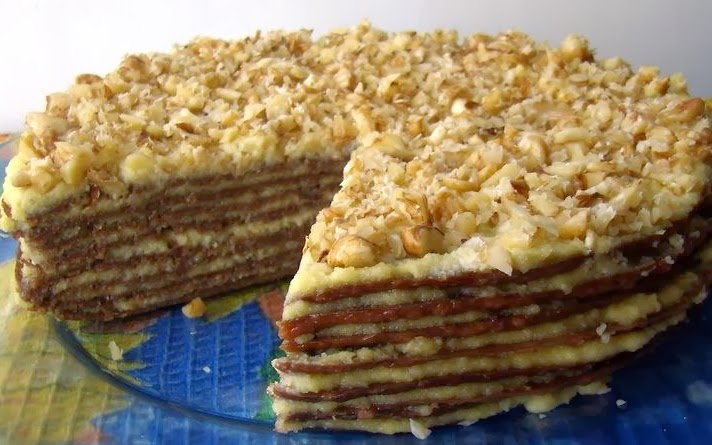 Мартышкин торт Предлагаю вкусный и полезный торт на встречу нового 2016 года Готовим коржи: смешать и измельчить 8 бананов и 200 грамм орехов. Из орехов лучше всего подойдет фундук. Орехи лучше всего измельчить отдельно, только потом смешать с бананами. Так же можете добавить в массу 2 - 3 ч.л. какао, у вас получится бананово-орехово - шоколадный коржик. Из полученной массы необходимо приготовить 5 - 6 блинчиков и высушить их в духовке при температуре 120 градусов. Для этого на противень необходимо положить пергаментную бумагу, слегка смазать растительным маслом, хотя масло не обязательно, затем аккуратно ложкой на противень положите блинчики и разровняйте. На один блинчик у вас уйдет примерно 5 - 6 ст.л. бананово - ореховой смеси. Блинчики необходимо сушить в духовке 20 минут. Получившиеся коржи отложите в сторону. Готовим крем: смешайте 1 стакан кешью, 1 стакан кокосовой пудры, апельсиновый сок, 2 - 3 ст.л. меда и ваниль. Кешью необходимо предварительно замочить на 3 часа а из кокосовой стружки, с помощью блендера приготовить пудру. Для приготовления апельсинового сока необходимы 2 апельсина. Готовые коржики поочередно прослоите кремом, затем можете украсить бананами или измельченным миндалем и грецкими орехами. Готовый торт поставьте на 2 - 3 часа в холодильник, для того чтобы крем пропитался.