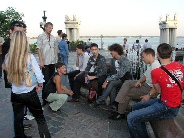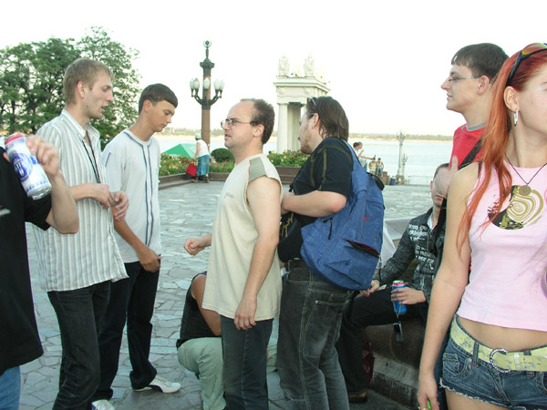 Сделал дело – гуляй смело. Довольный Адаптор, после того, как отмыл свои грязнущие руки в фонтане. Остальные ленно общаются. Виконт нервничает, крутит телефон в руках.