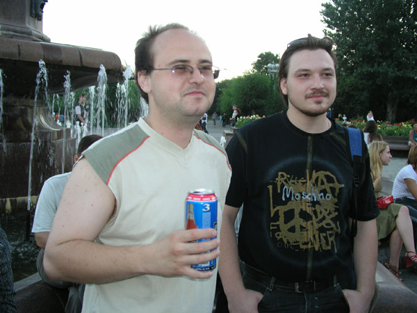 Вот такими они предстали передо мной, когда я подошел к ним. Виконт сидел, скучал, похрапывал, Адаптор в тихоря мыл руки в фонтане, нарушал микрофлору бассейна. Остальные ленно общались, ожидай приход основных действующих лиц сегодняшней фотосессии.
