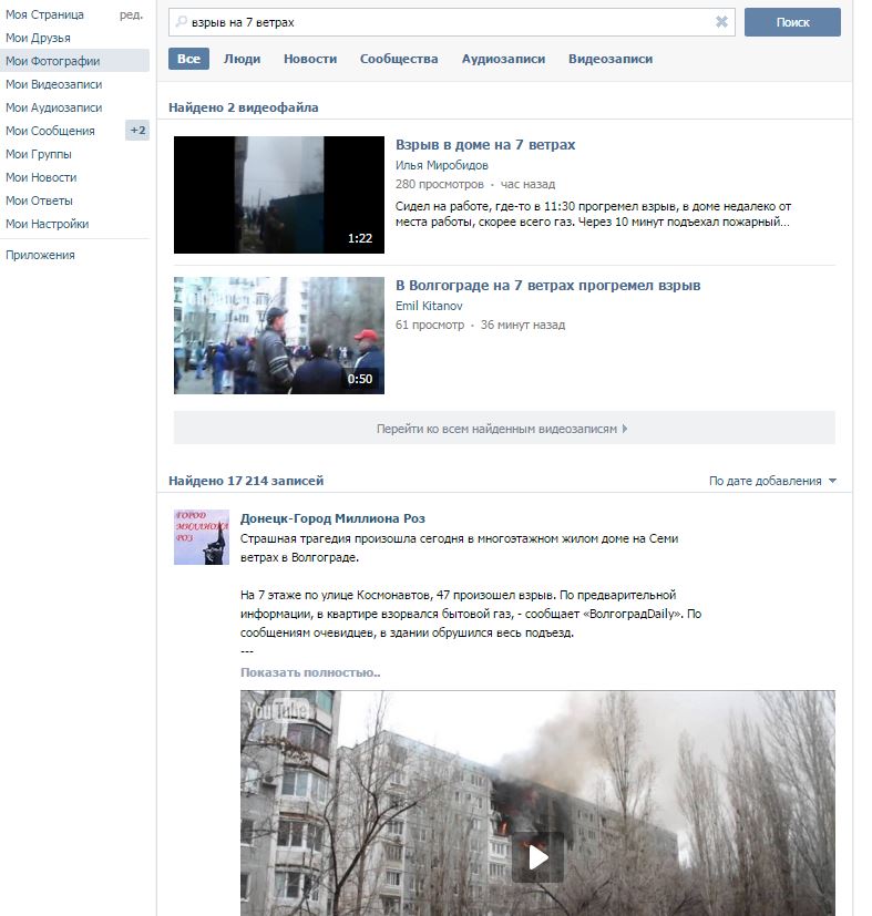 нет, это картинка с другой стороны дома, со двора обрушение до низа практически после первого взрыва ---------- Сообщение добавлено 20.12.2015 13:20 ---------- мною оставлено было предупреждение "осторожно, вконтактик" или вами предложено мне перезалить это видео для всех?