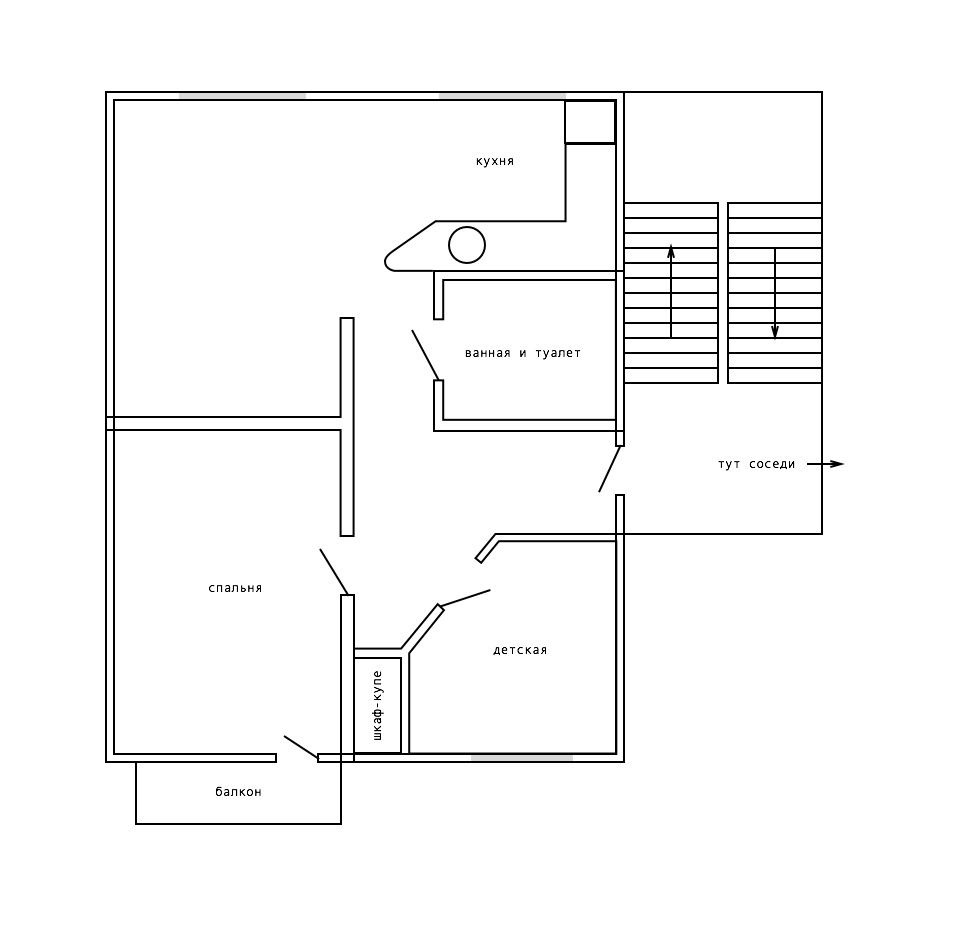 Как у нас сейчас) У нас 42, двушка, большую комнату поделили на зону спальни и зону гостиной, считай получилась трешка