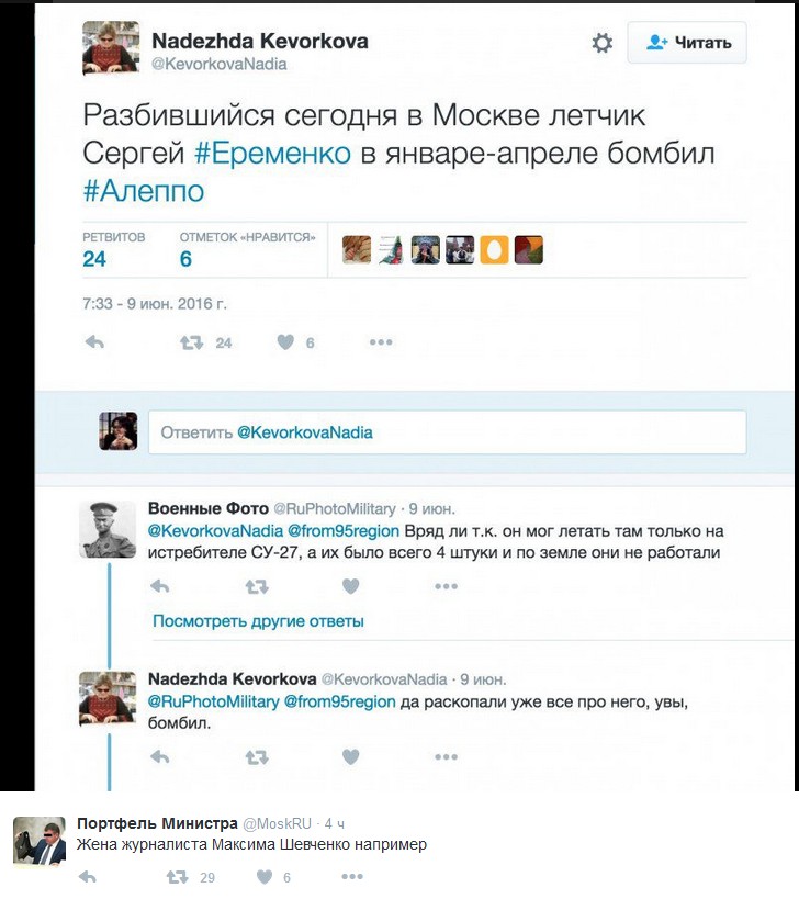 Ютта, так не в этом суть ее сообщения она написала, что видео - херня, никто не погиб и рассказывает историю мутную а смысл таков, что инцидентов было два - первый в начале мая, когда артиллерист погиб при обстреле гумковоя. Точнее, был смертельно ранен и умер в госпитале 7 июня, второй - 15 июня под Пальмирой, погиб морпех в результате взрыва шахидмобиля, и видео этого взрыва все и обсуждают... А вы и дальше читайте муть... Я уже написал - бег на Ракку и нефтегазовые поля обернется для сирийцев громадным катастрофом под Алеппо... И, возможно, будет стоить всей войны